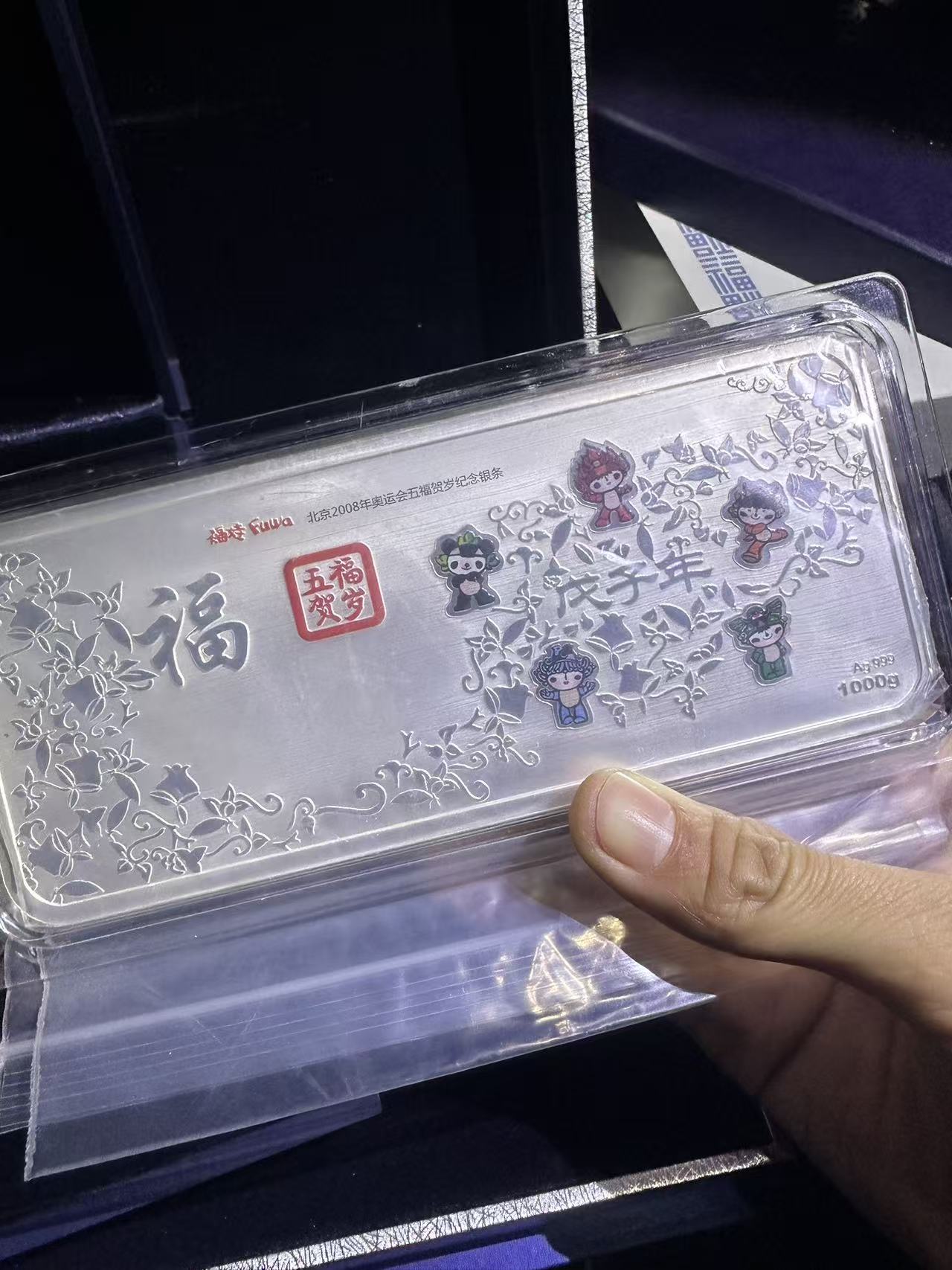→ 出2008年奥运会五福贺岁纪念银条1000克