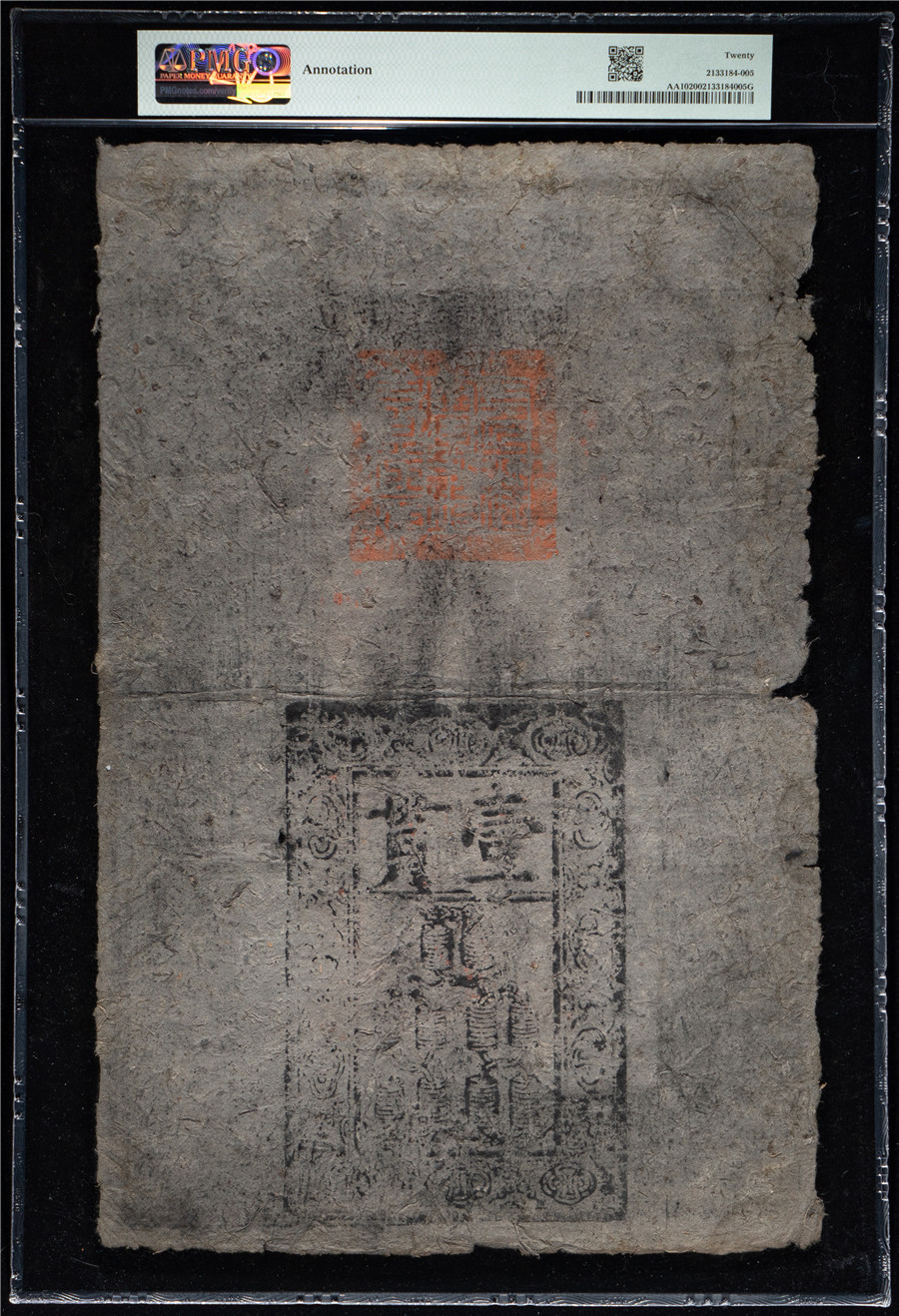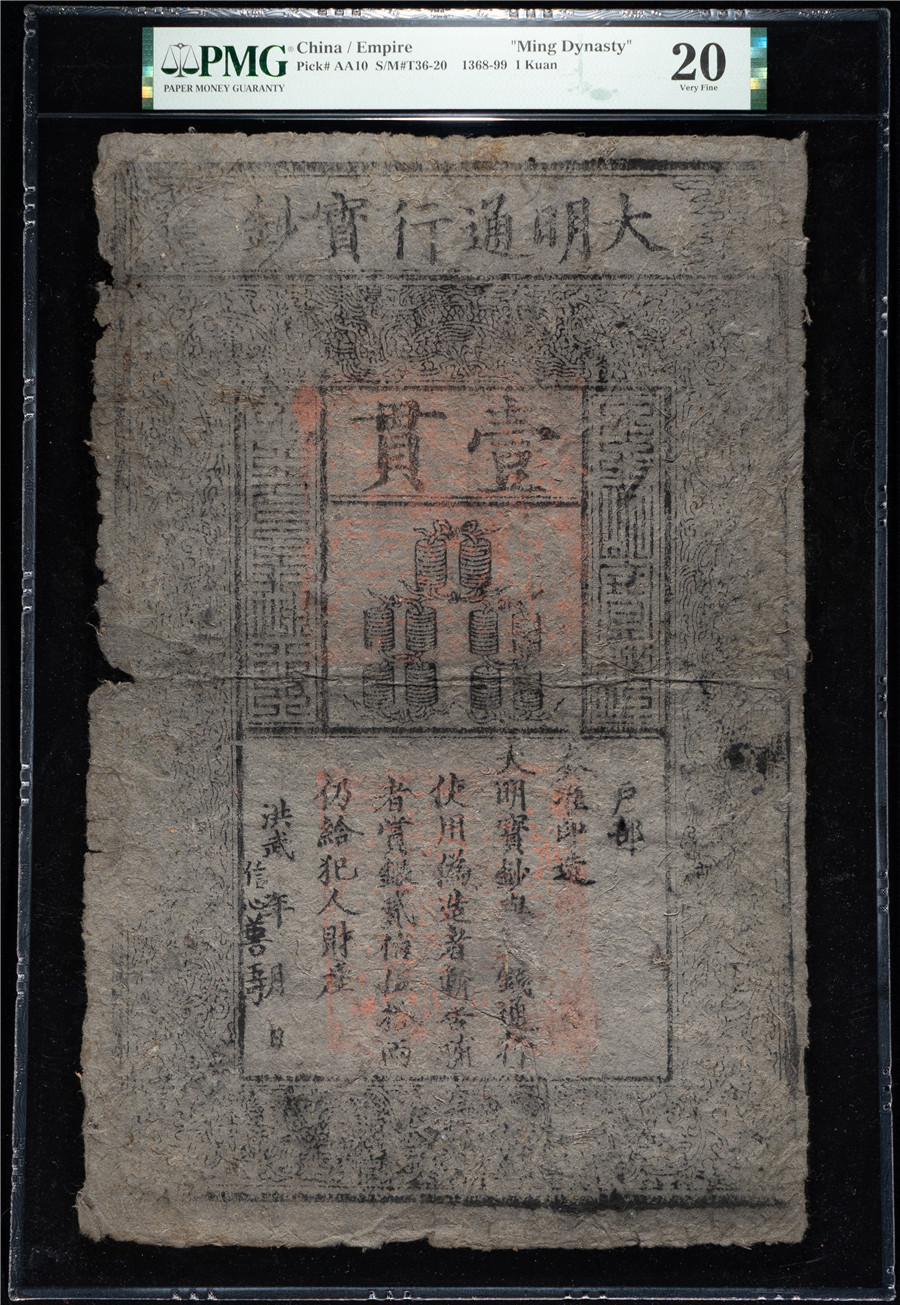 售大明通行宝钞 壹贯 “信心善”五+吋 2133184-005 PMG20 40000元