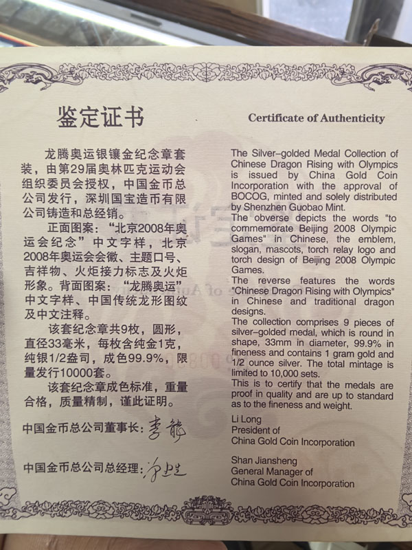 大盘销售价出奥运金银礼盒