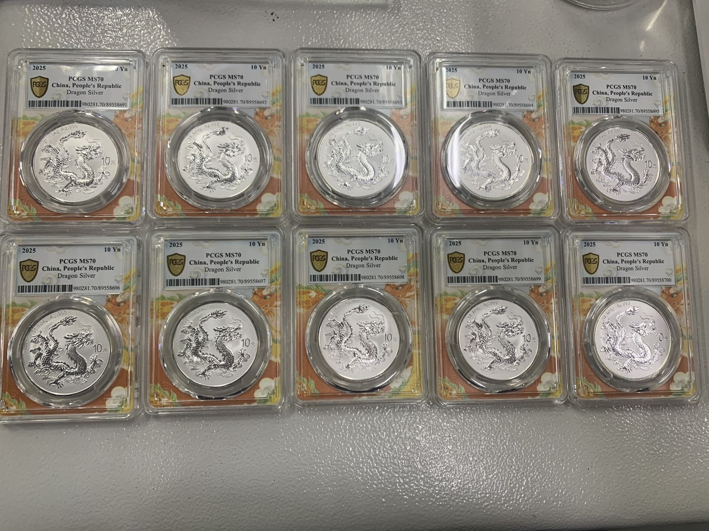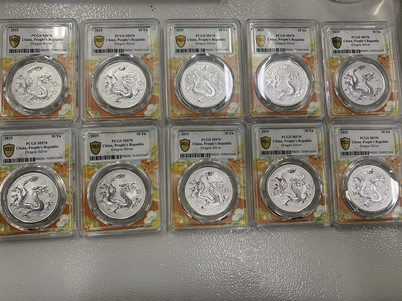 PCGS评级无47标十连,1280一枚,含2枚银尾!
