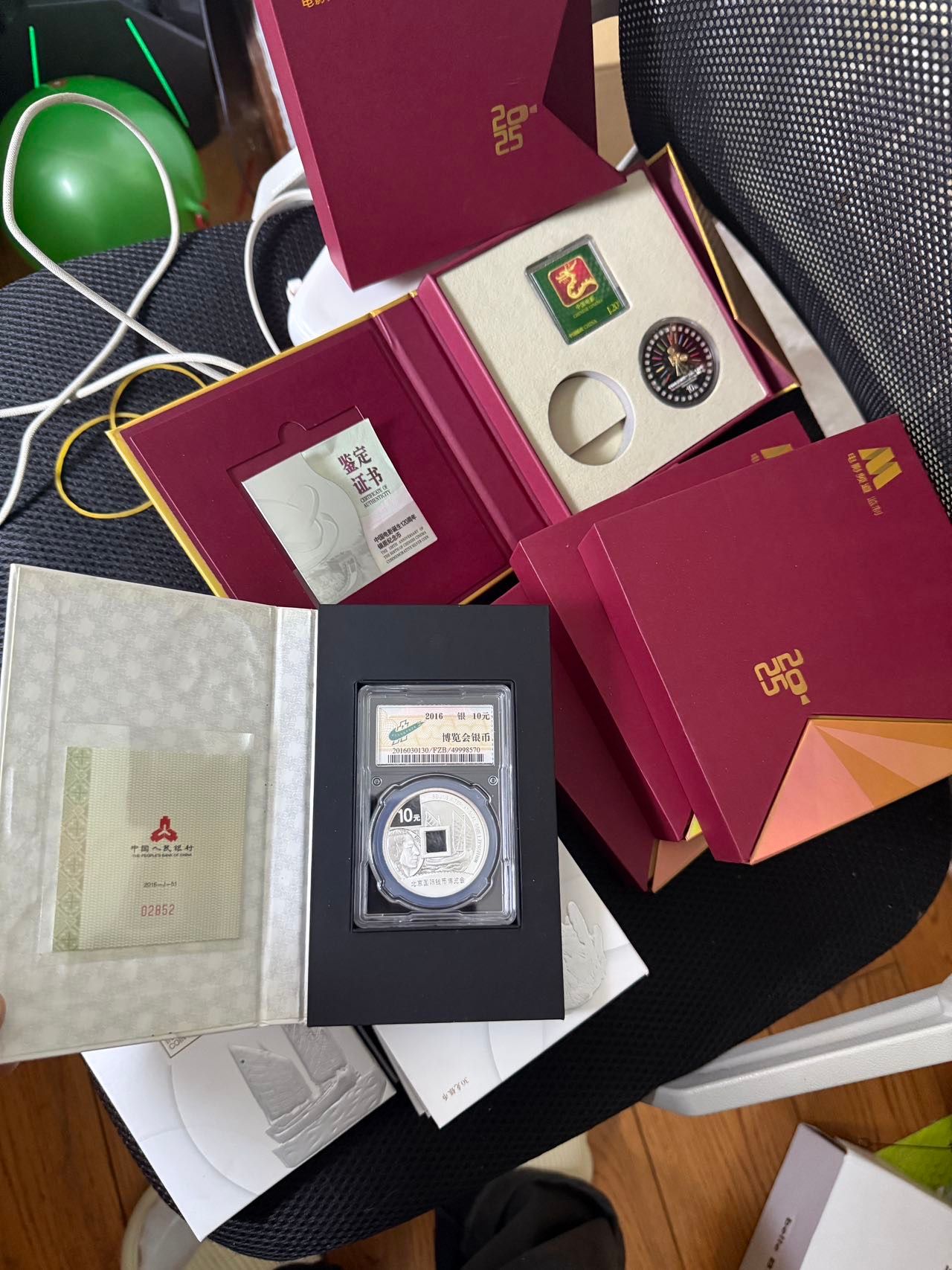 650出16年博览会银币封装6个证书盒子齐全,再加4个120年电影