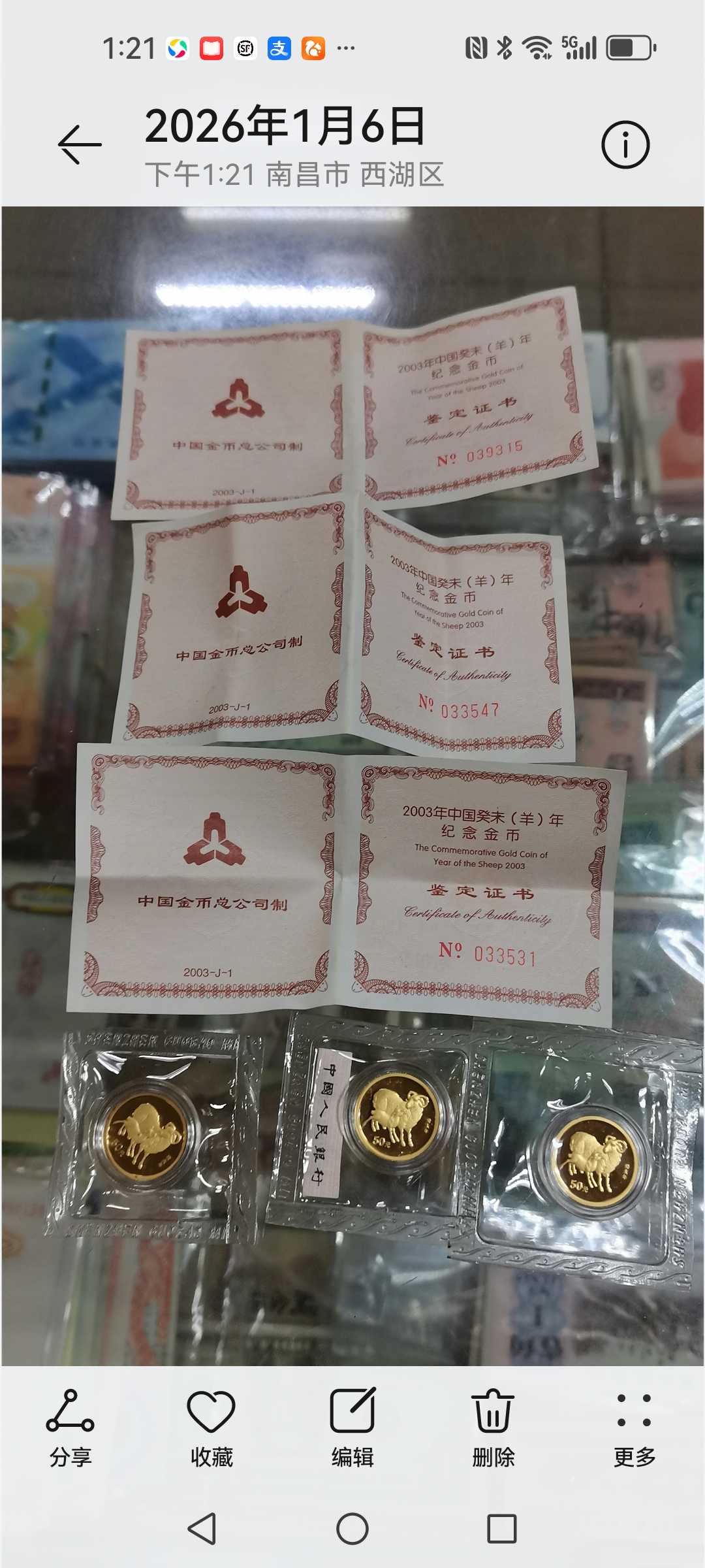 。。售03年羊面值50元金币请看图。。