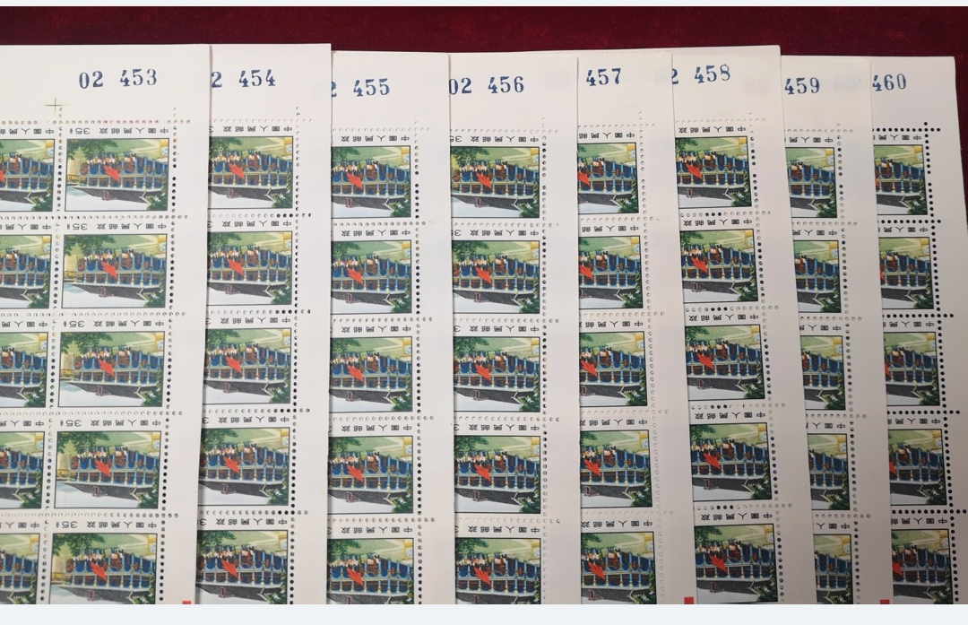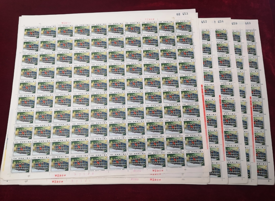出普14 革命圣地图案 邮票 35分(100枚/版) 遵义会议 版票共8板连号, 挺版原胶全品