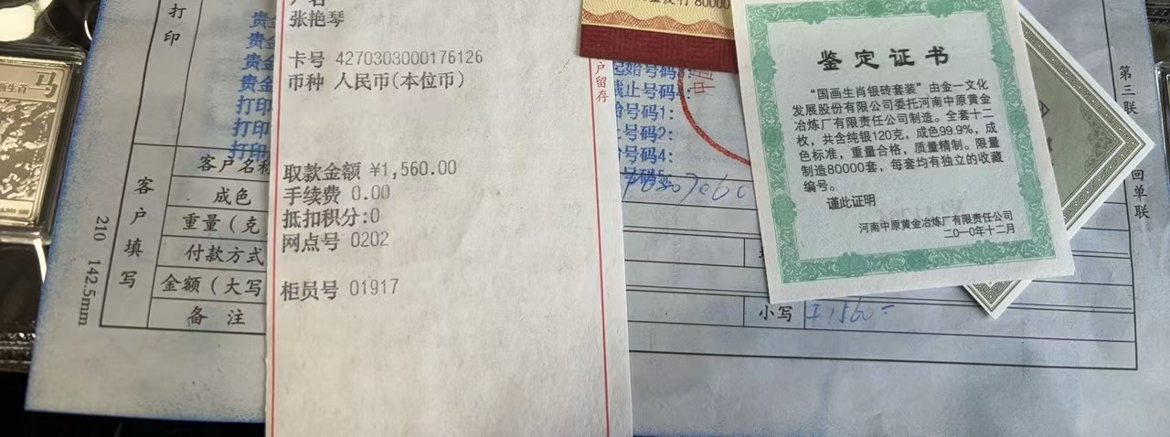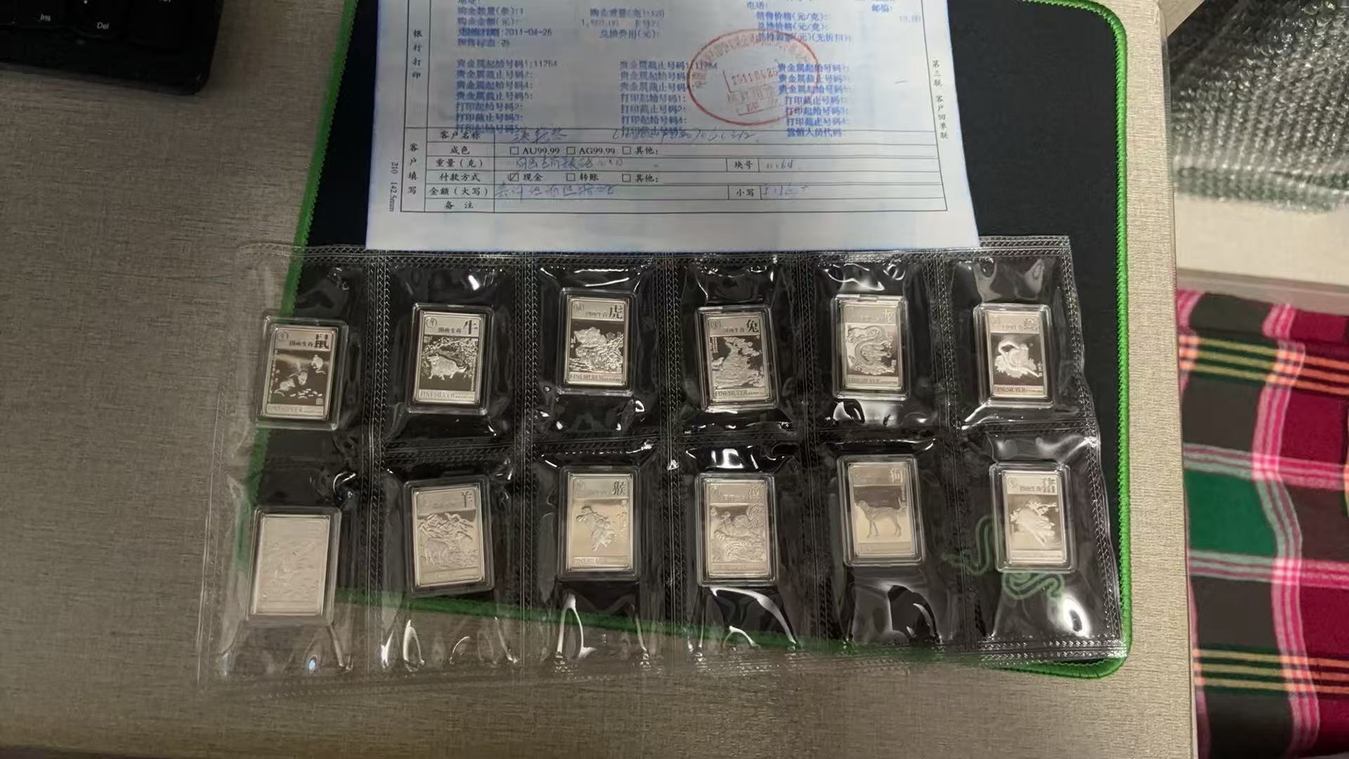 2011年工行1560买的12生肖银砖,配件齐全,一共120克X20元,2400元包顺丰到手,直接确认
