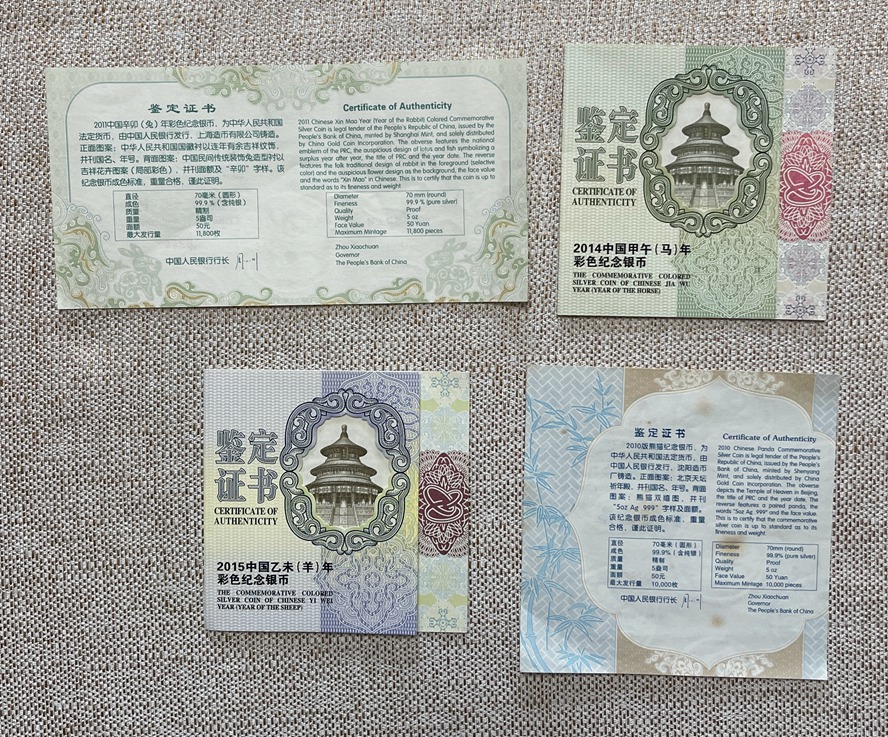 如图4枚5盎司银币 带原证书