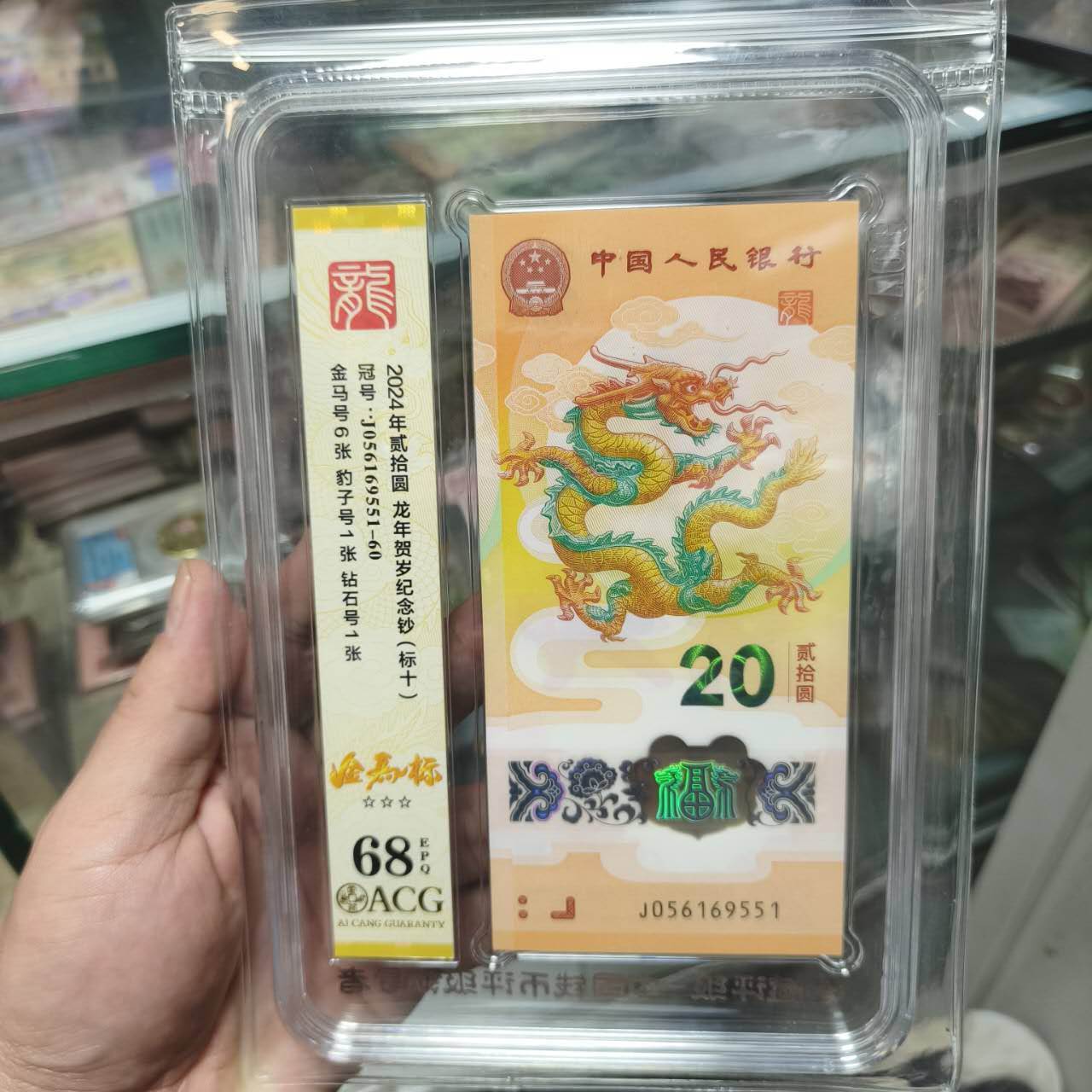 出龙钞金马车满号标十含豹子555,爱藏评级68,具体号码见照片,13800元