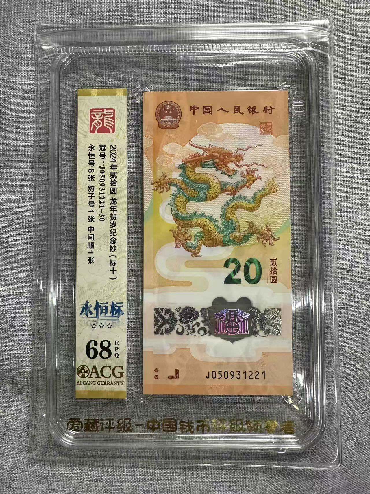 2024龙钞050931221标十,爱藏68高分