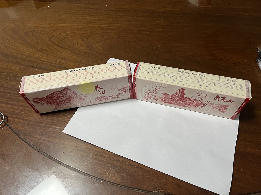 武夷山原盒1盒540元,泰山原盒680元,(原盒好品)。四山2对卷22.5元,(10.8+11.7元原桶无断齿)。900元包邮。