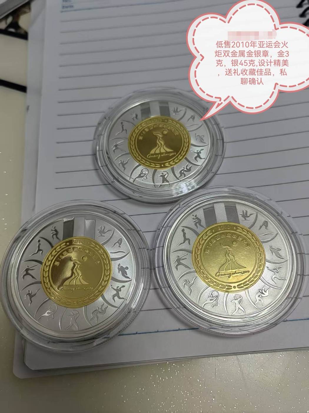 特价出售广州亚运会火炬双金属3克金+45克银,设计精美,