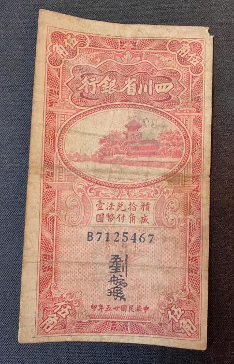 四川省银行红伍角,原票品如图380元