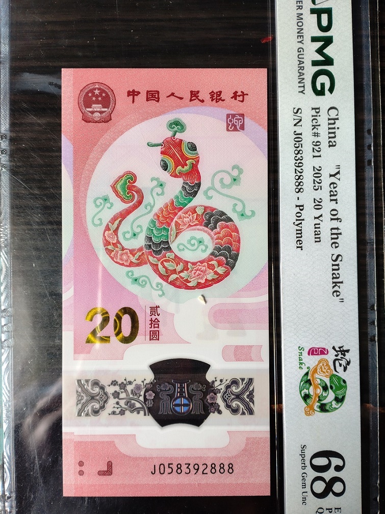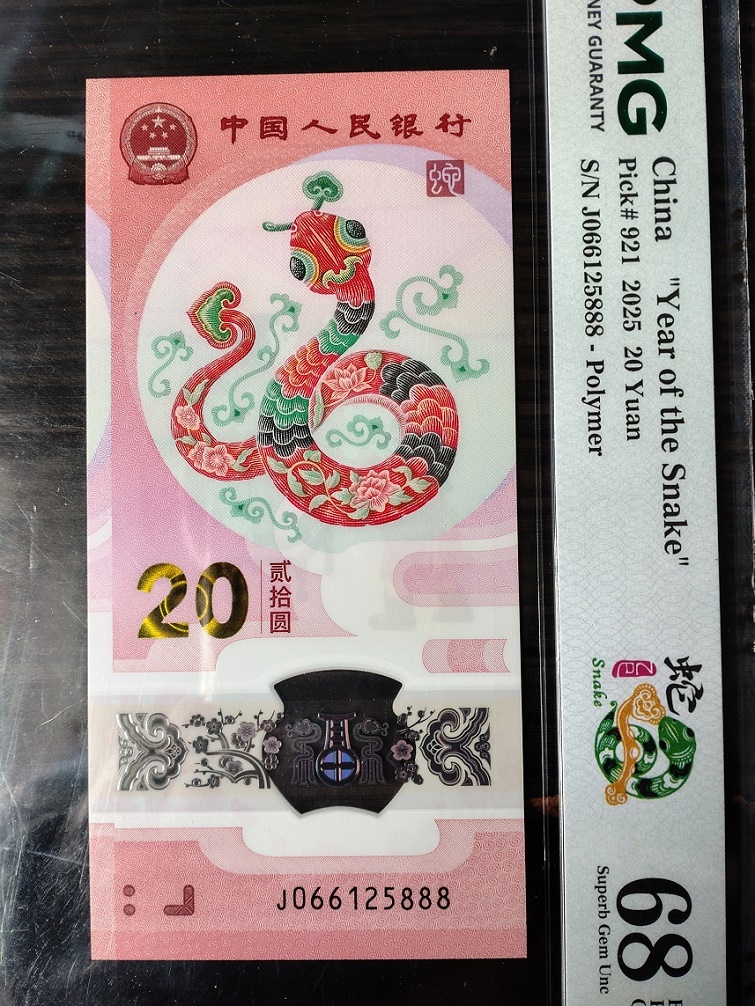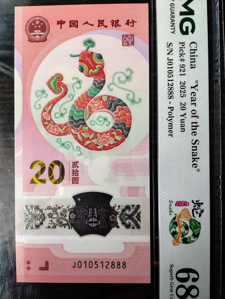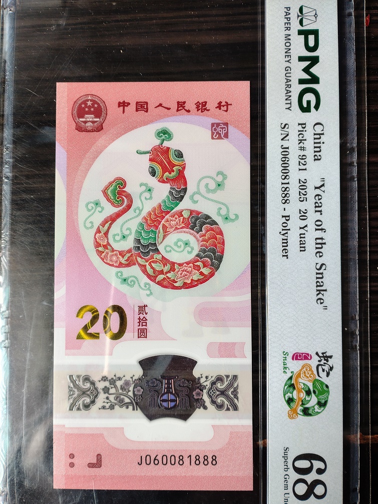 PMG评级68分无347豹子888蛇钞标十(副币裸钞),010512888。4500元三包。