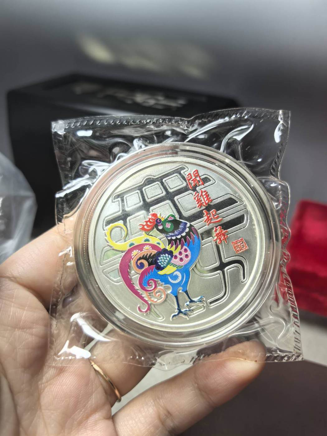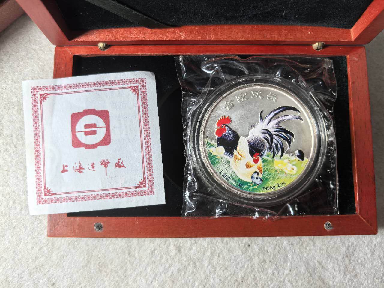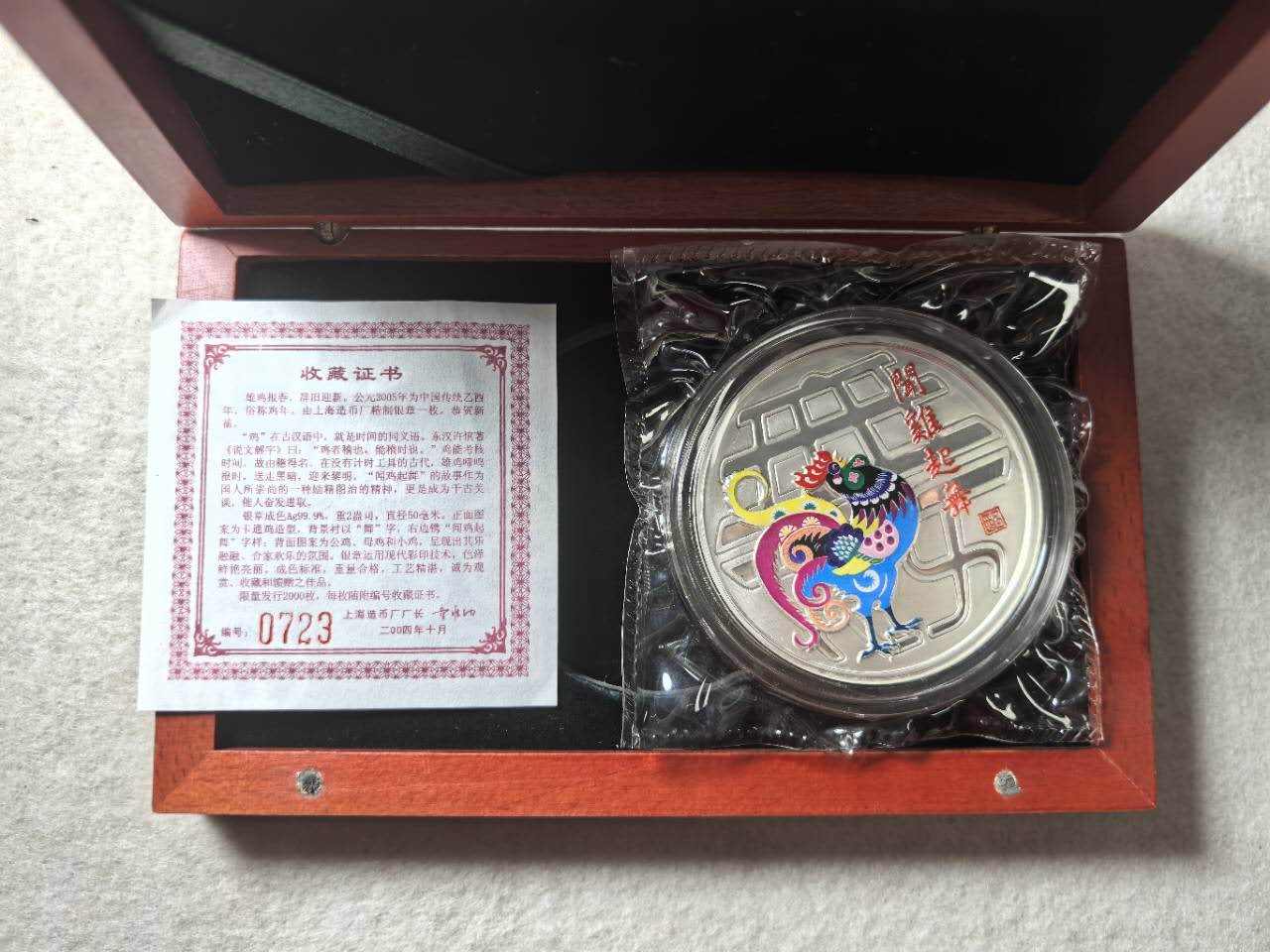 2005年鸡年纪念彩银章2盎司1260包邮,闻鸡起舞,合家欢乐,送人自藏均可,品相如图,按图发货