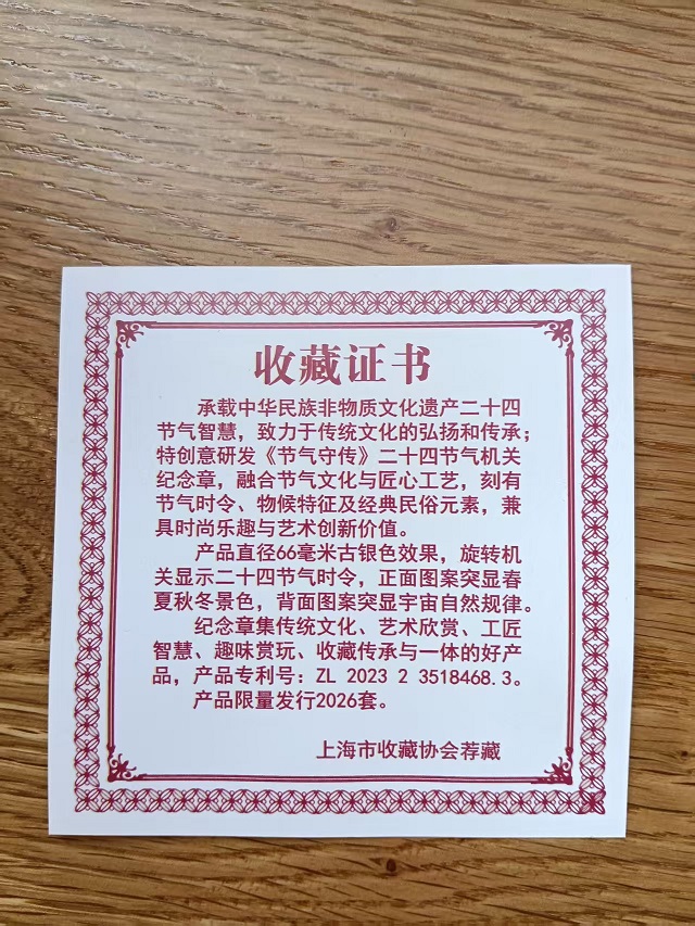 新品发行~二十四节气机关大铜章,镀银版,可以按钮旋转,专利工艺,66MM,原盒原证,电联或者微信13840884350确认,更多新品请关注朋友圈,直销模式,降低销售成本,惠让客户,有其他平台销售的朋友可以联系哦。(长期收购纪念章业务,具体加微信13840884350联系)
