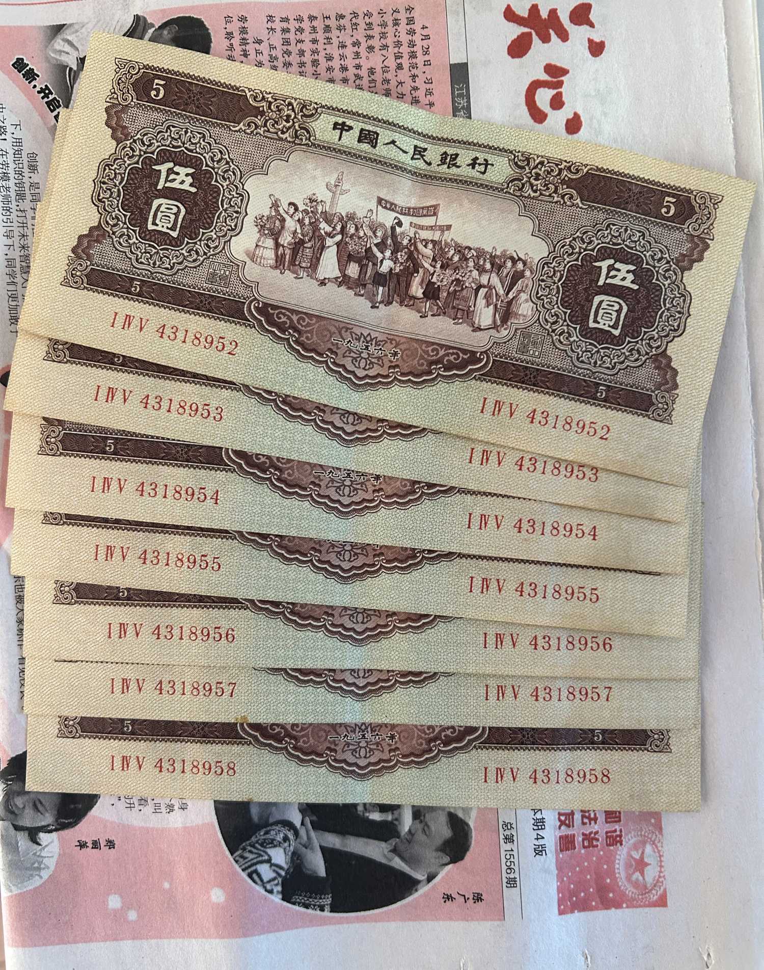 原票黄五元7连号,1200/张。
