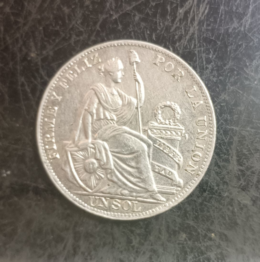 1934年秘鲁坐洋女神银币一个!