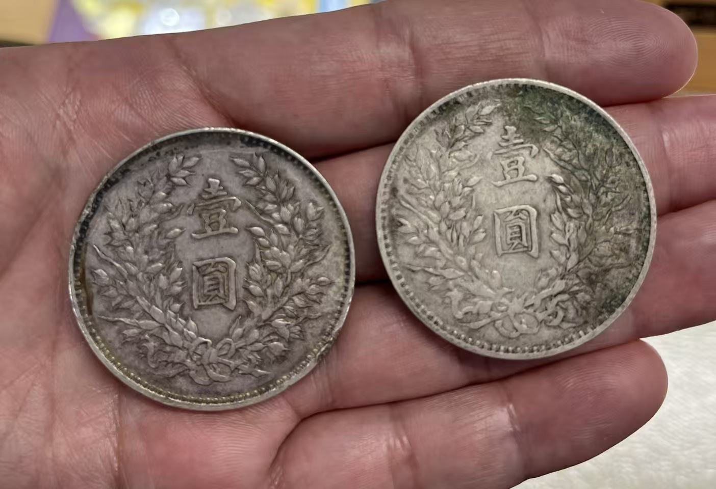 两枚银币重53.5克 不包老一起合售1000元。