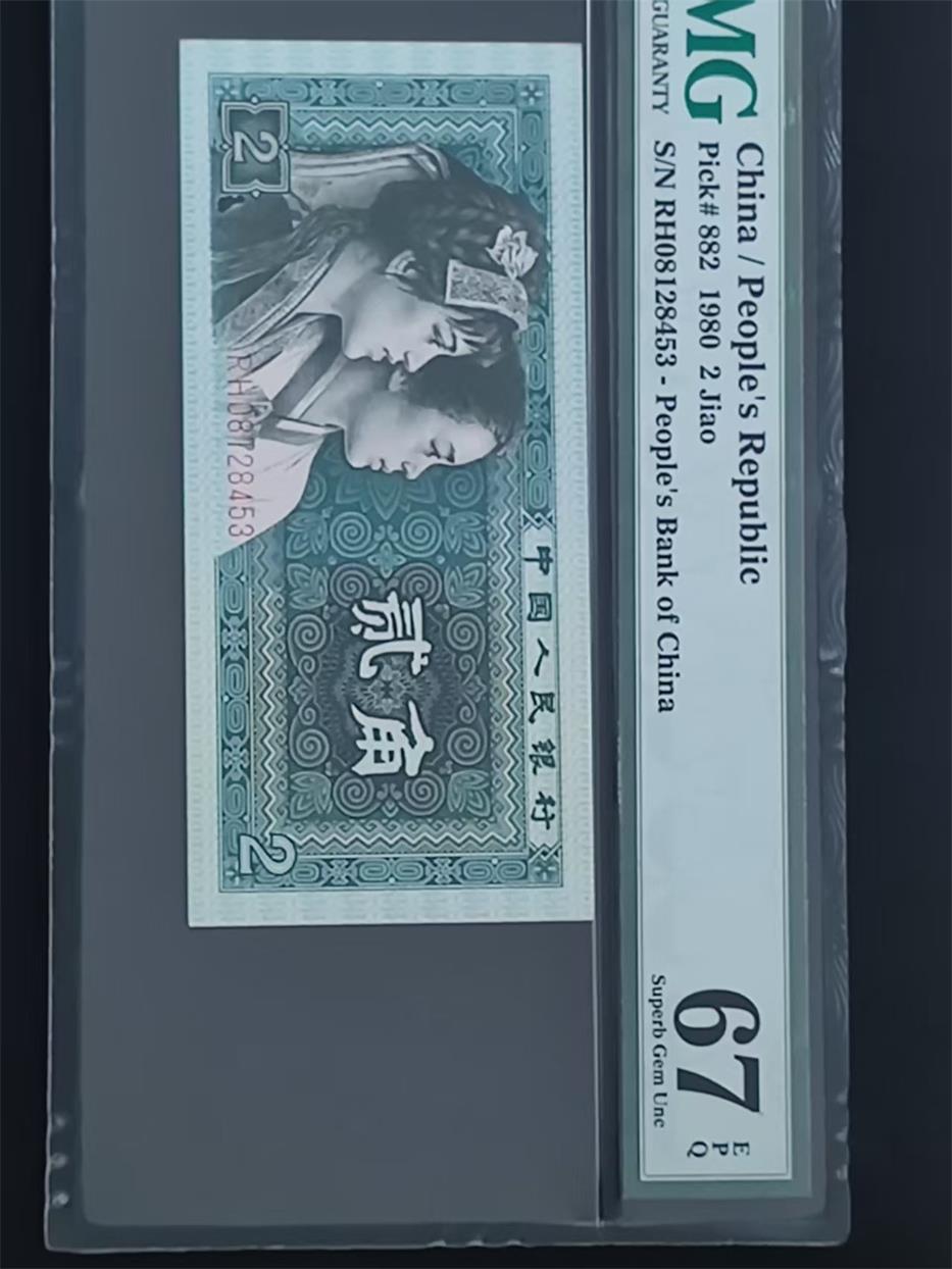 8002瑕疵币一枚,PMG67分,酷似点赞手,350