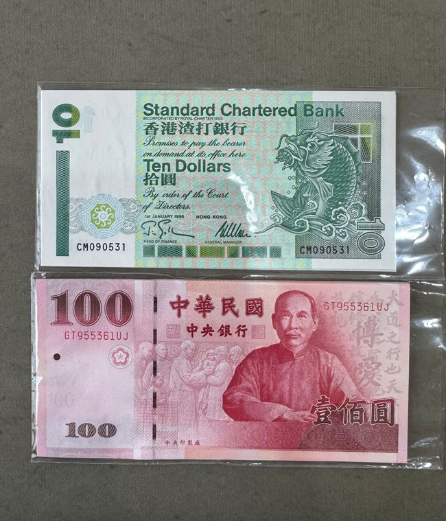 渣打10元和辛亥革命100元标十