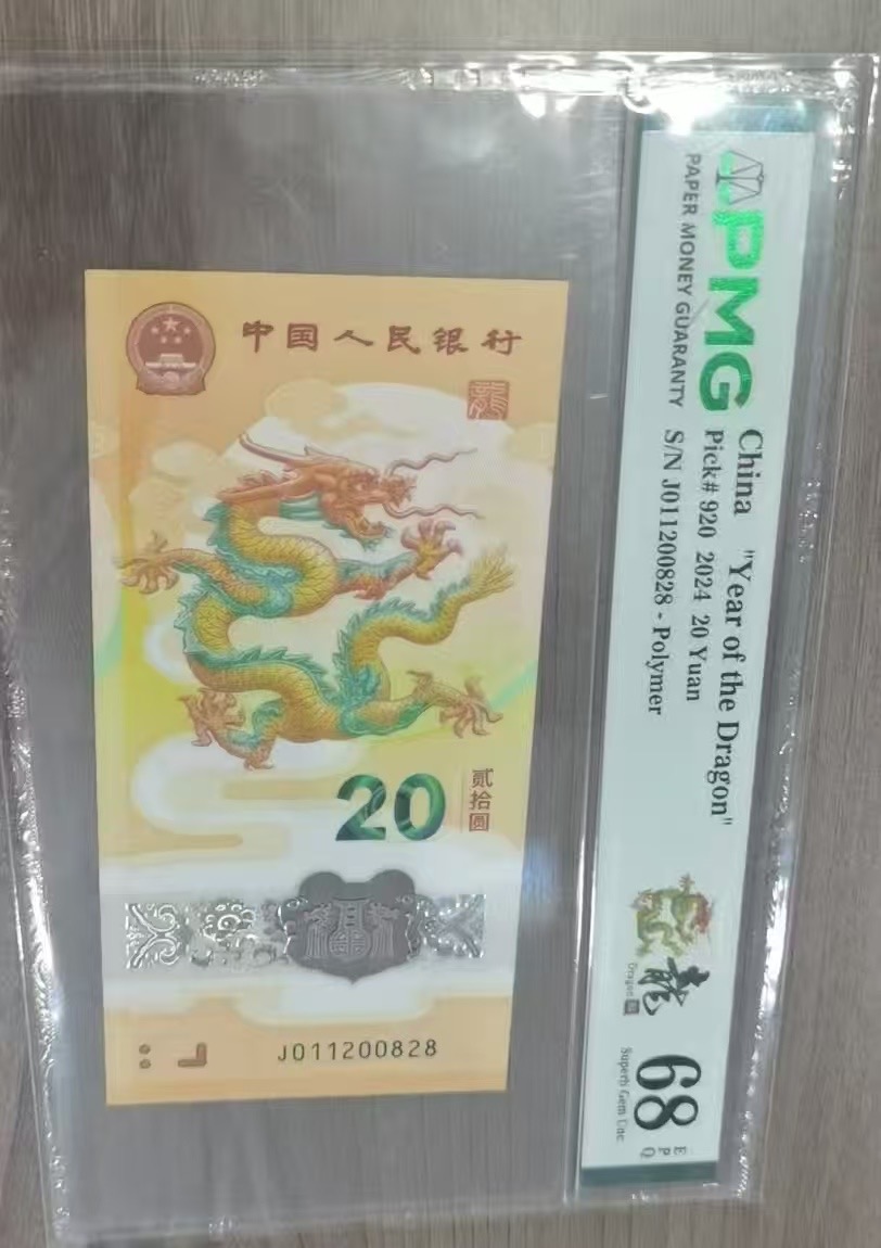 出龙钞0128组尾8,pmg68分