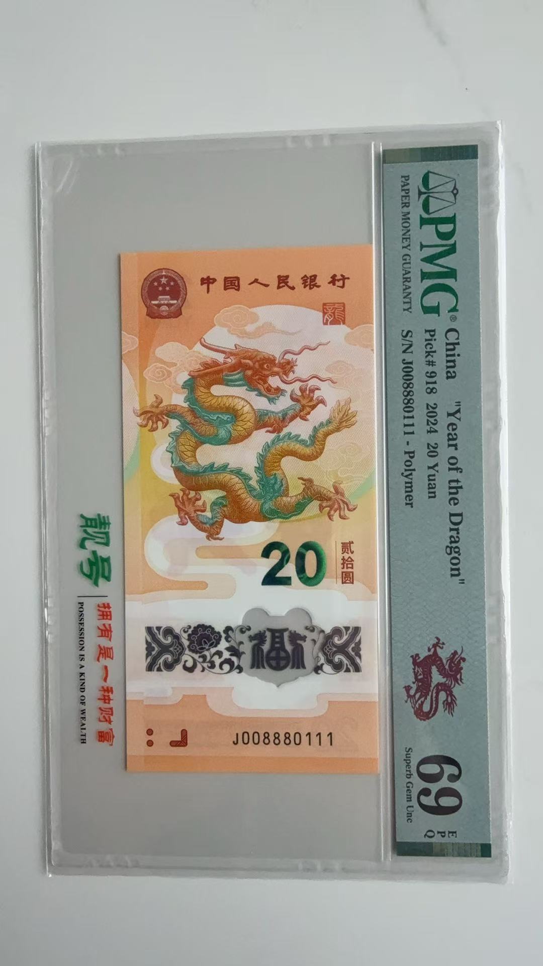 贺岁龙钞018尾豹子111,号码008880111,PMG69分,25888元先款包邮顺丰,不议价,微信看图确认,谢谢,微信15329096777