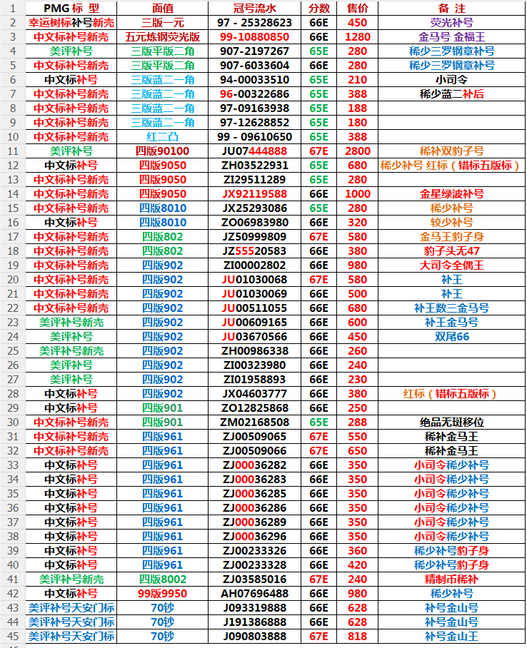 更新出售PMG三四版补号
