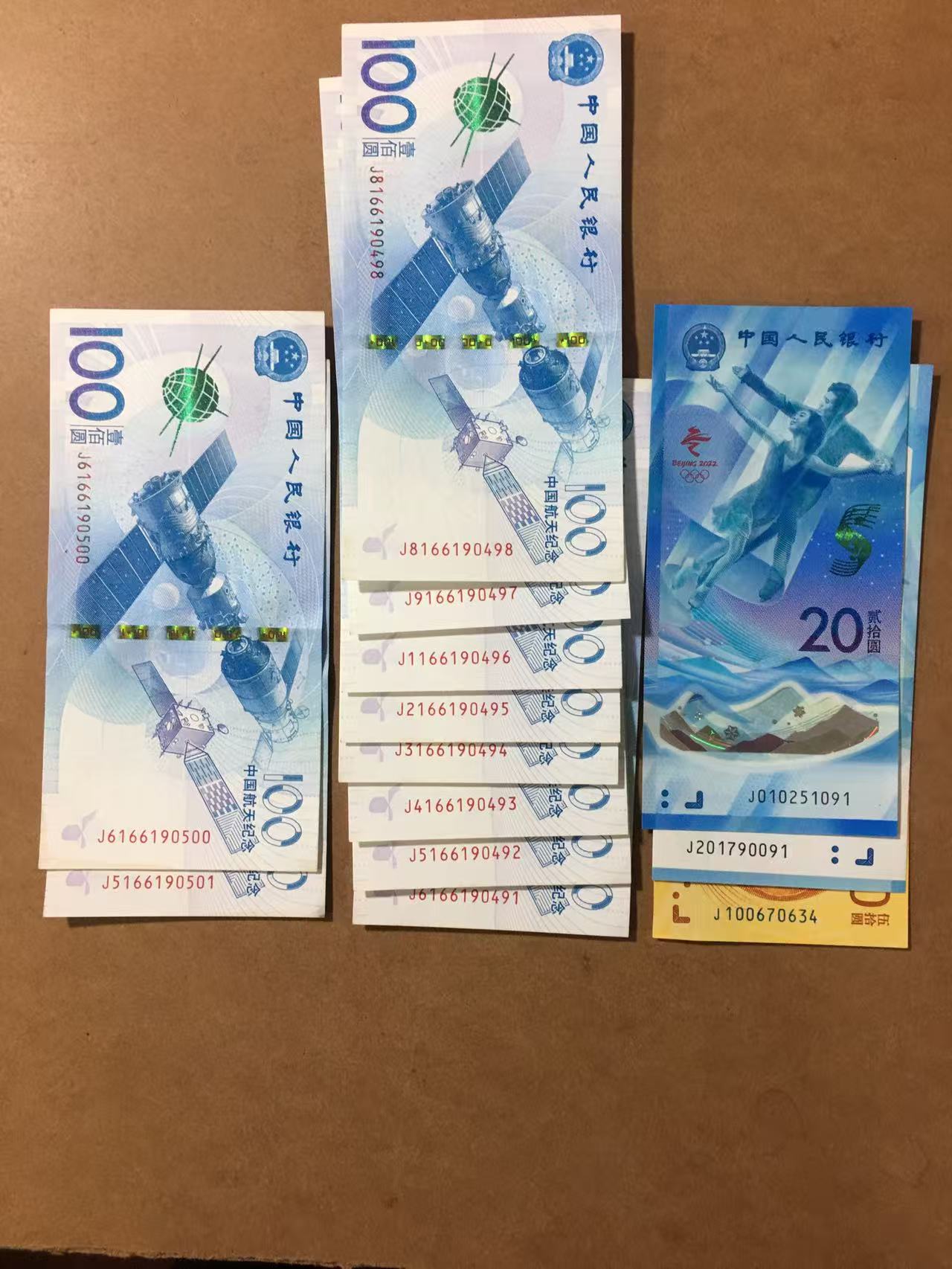 出航天钞10张两张无347、冬奥两张一张无347、70钞一张共面值1090元另加30元成交、喜欢联系