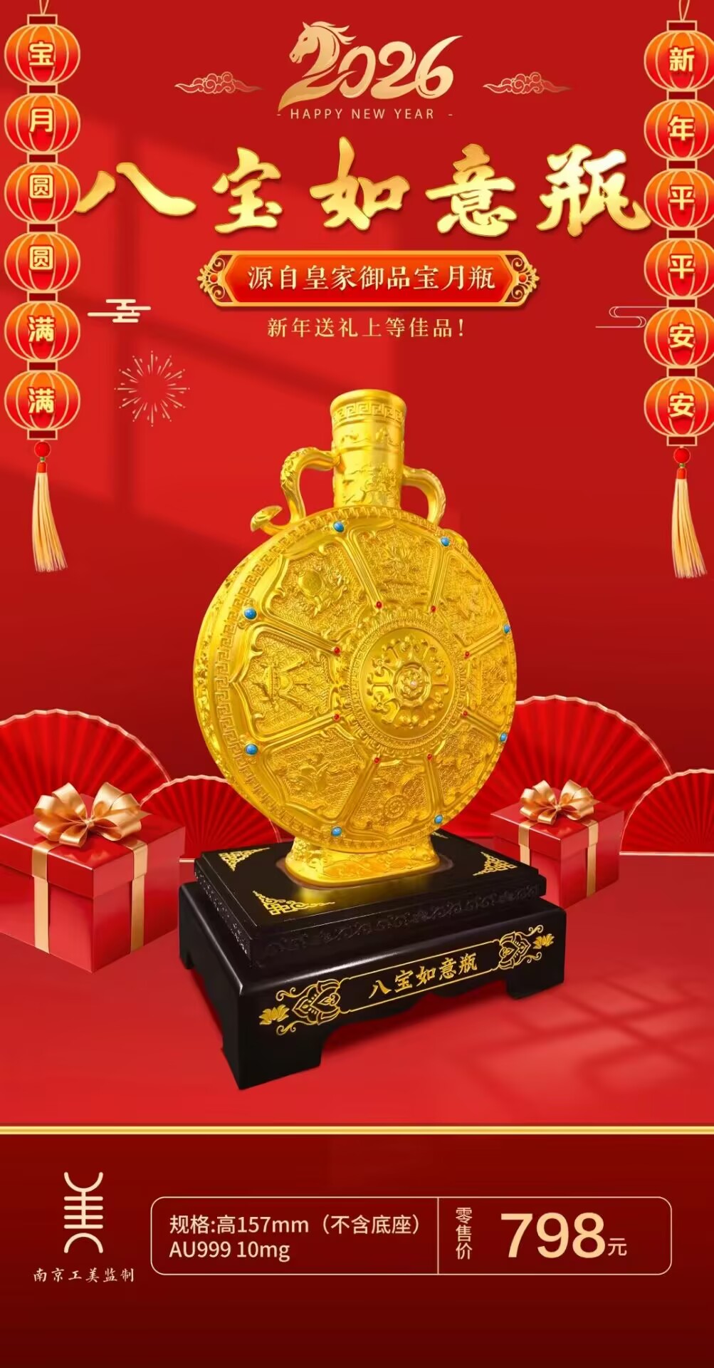 《八宝如意瓶》新国潮摆件源自故宫御品宝月瓶,