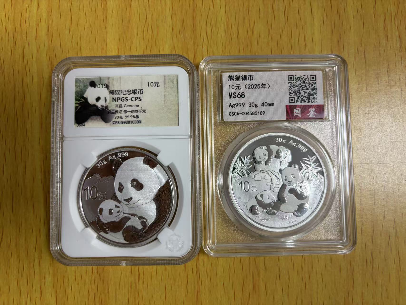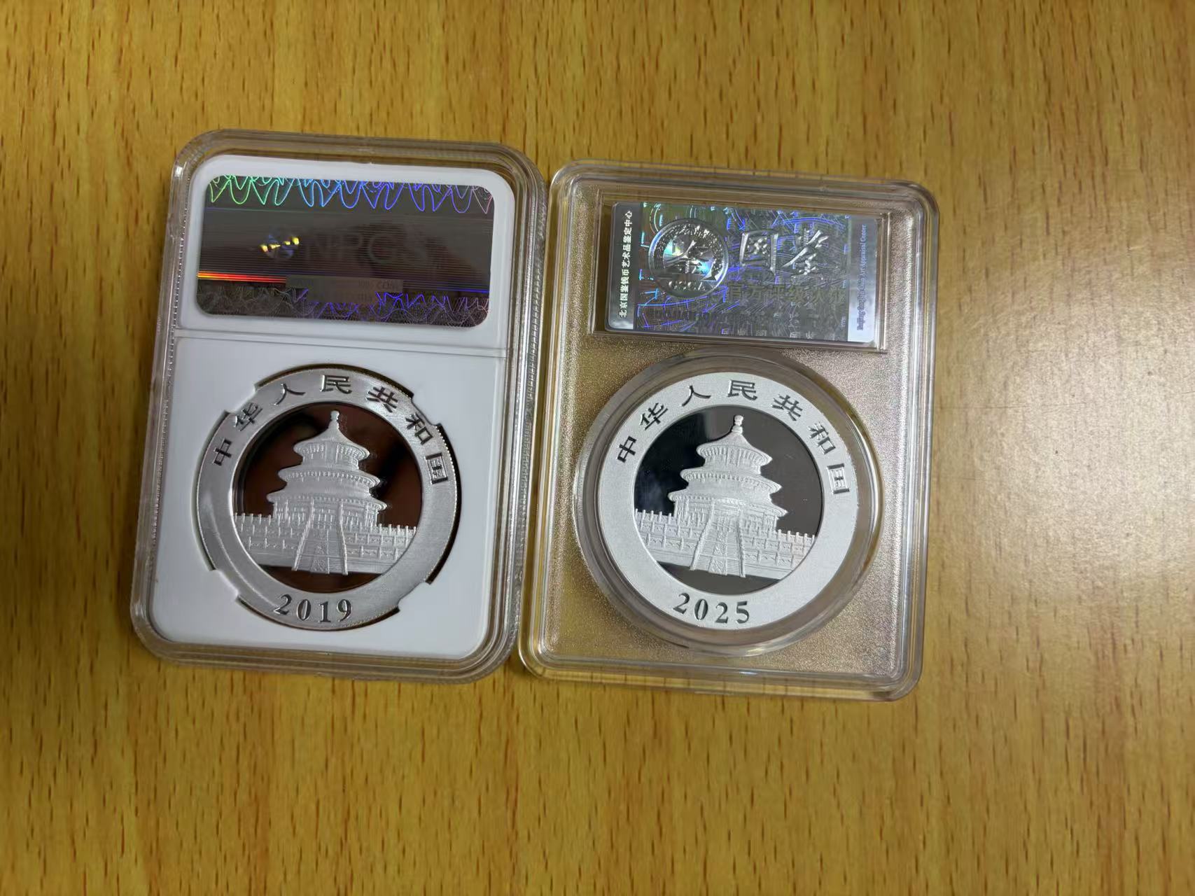 评级2019和2025熊猫银币各1枚,品相如图,575/枚一起出