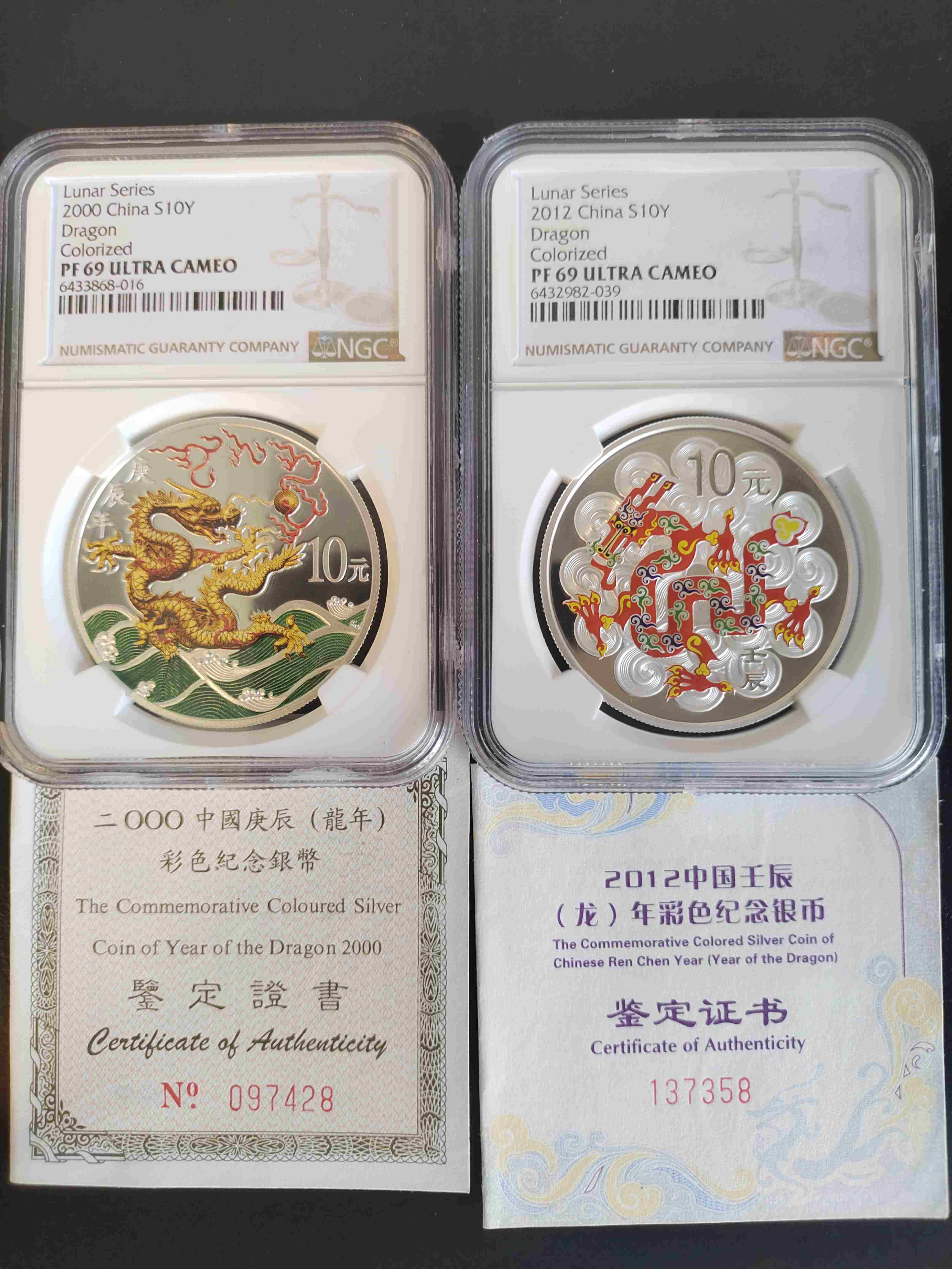 2000彩银龙,12彩银龙,高分评级品相好,一对3380包顺丰,议价勿扰