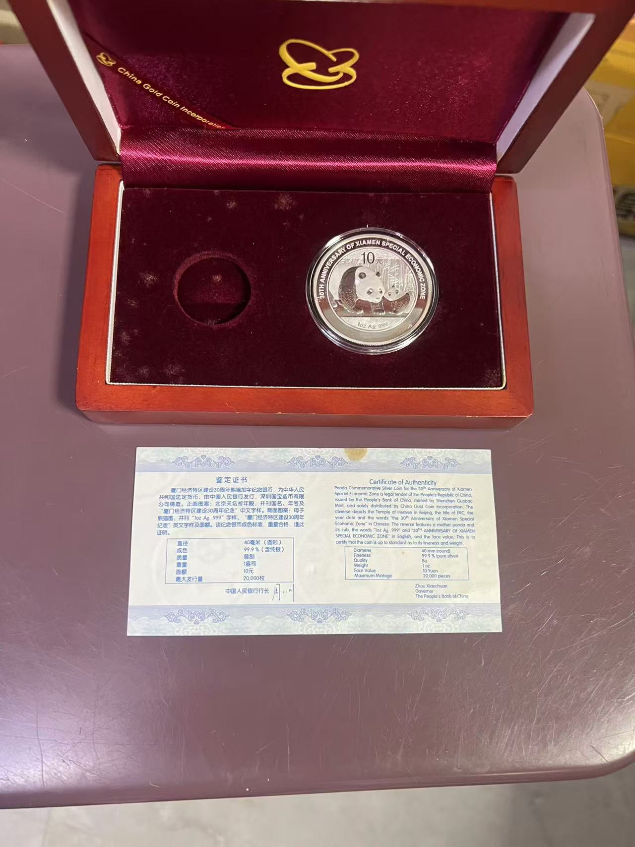 厦门特区30周年加字银猫,品相好如图,售680元,款到包到手。