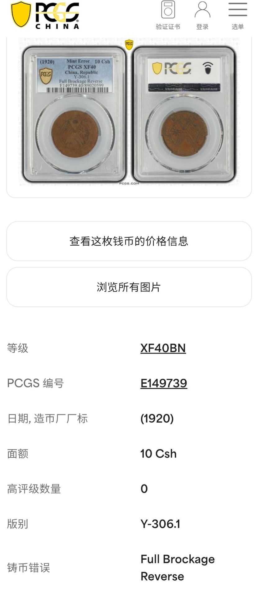 → 冠军分PCGS XF40 错版阴阳币 民国当十铜元