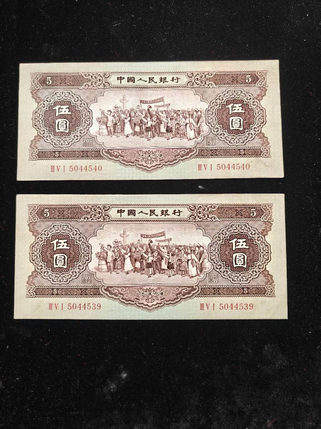 卖两张连号黄五元,原票