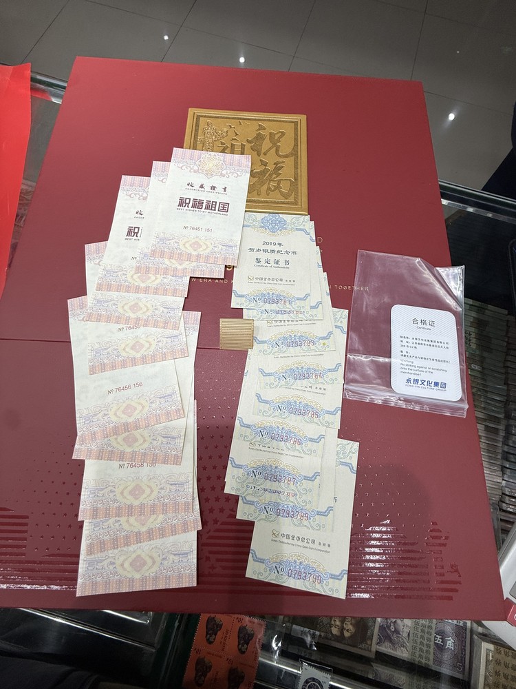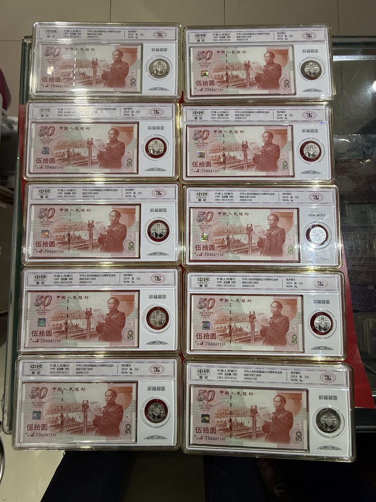 出建国钞标十,号码无347,中钞公司封装,灯下无斑,每币配有19年福字币一枚,证书齐全配礼品盒,4500元包邮,
