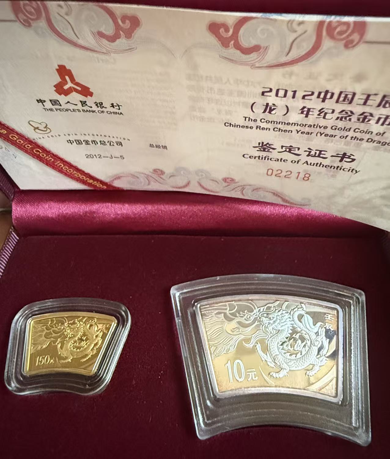 【出售】2012年中国壬辰(龙)年扇形纪念金银币