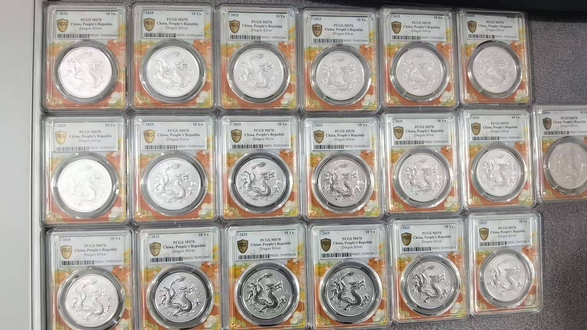 PCGS70分中国银龙,号段无47,960一枚通,19枚