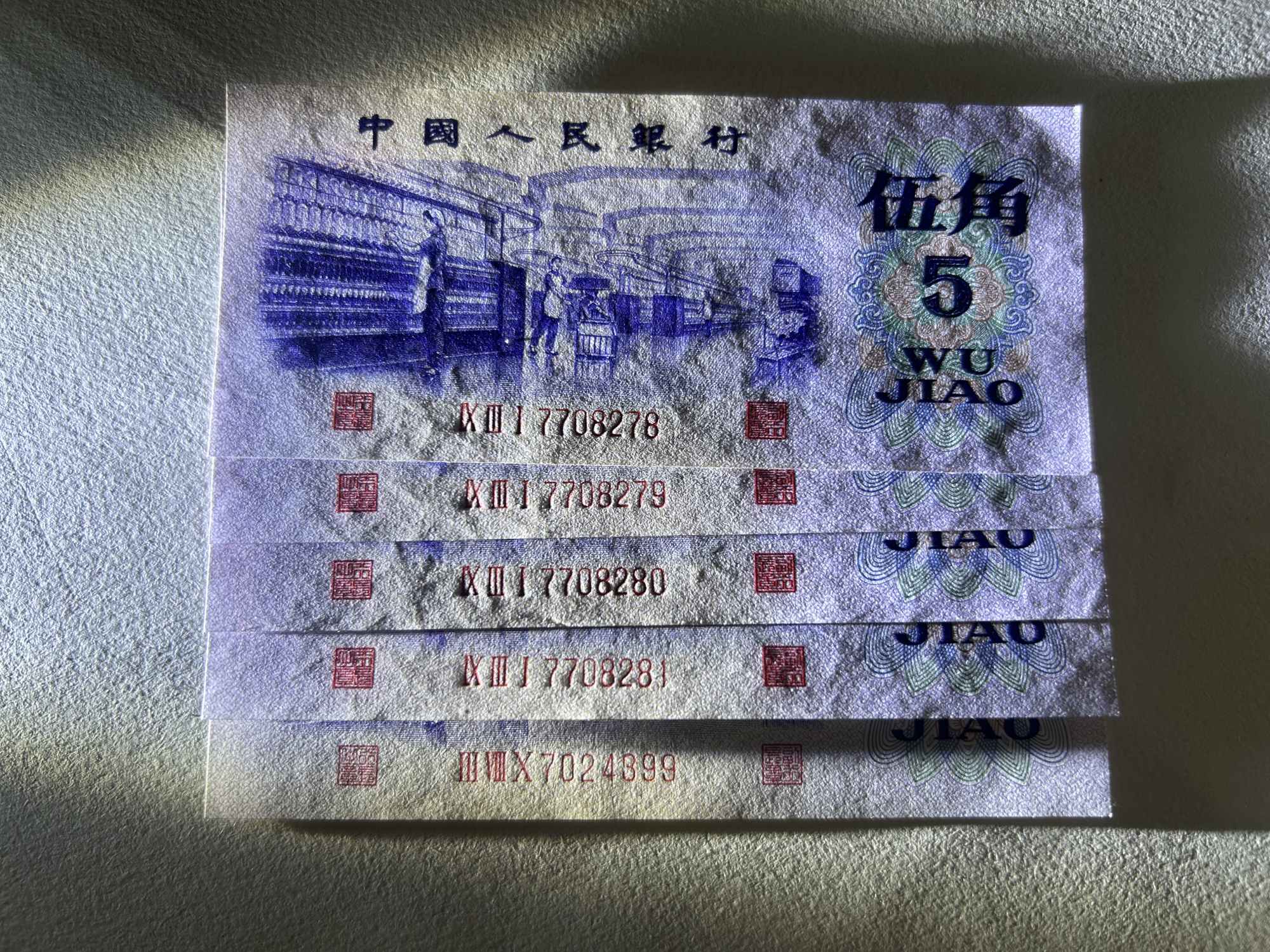 全新凸版五角4连+1单,原票无折,55/张。