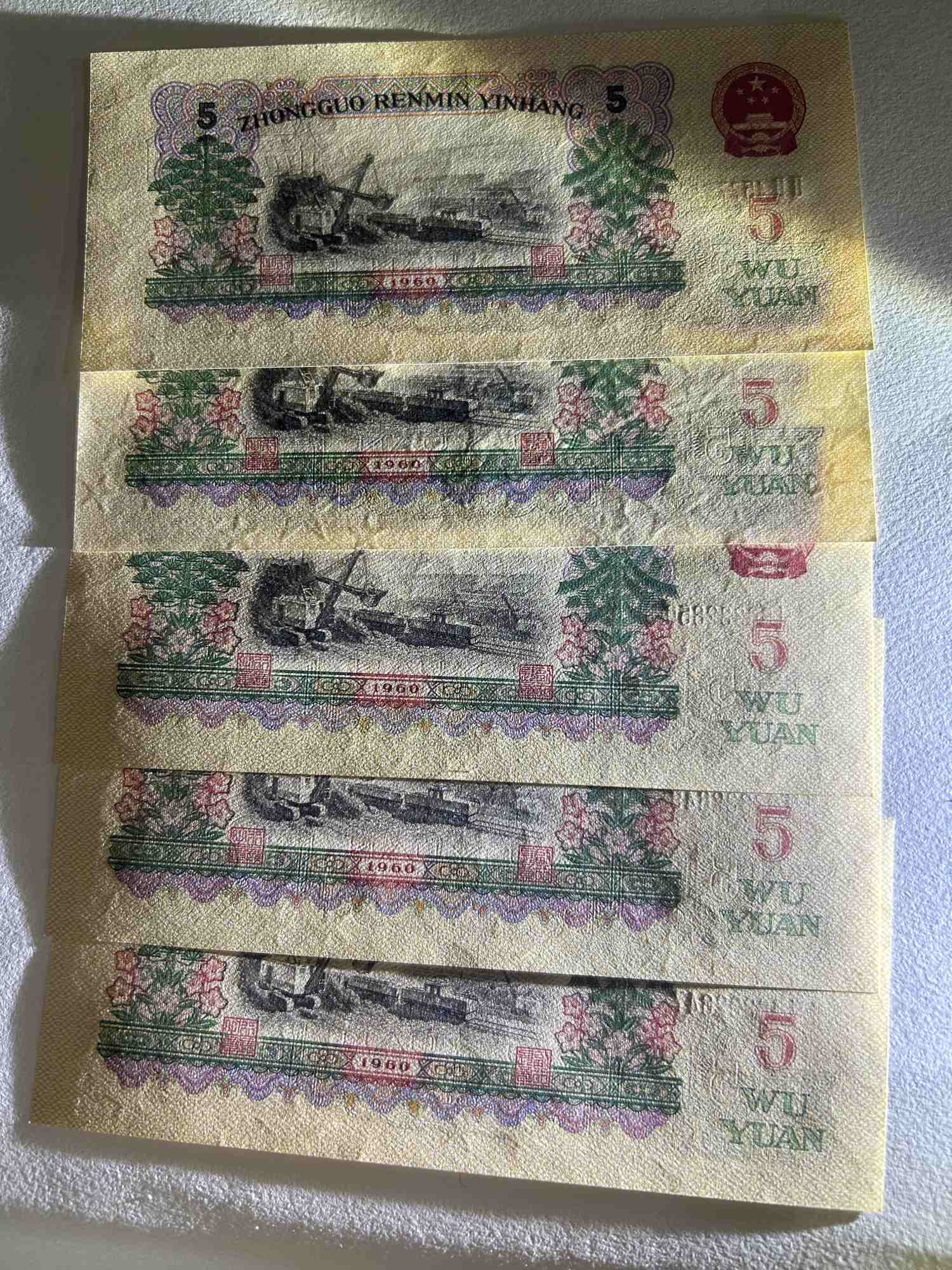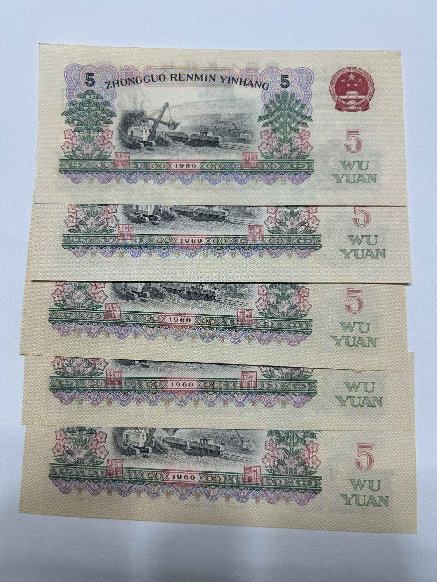 全新原票炼钢五元5张,一起220/张。