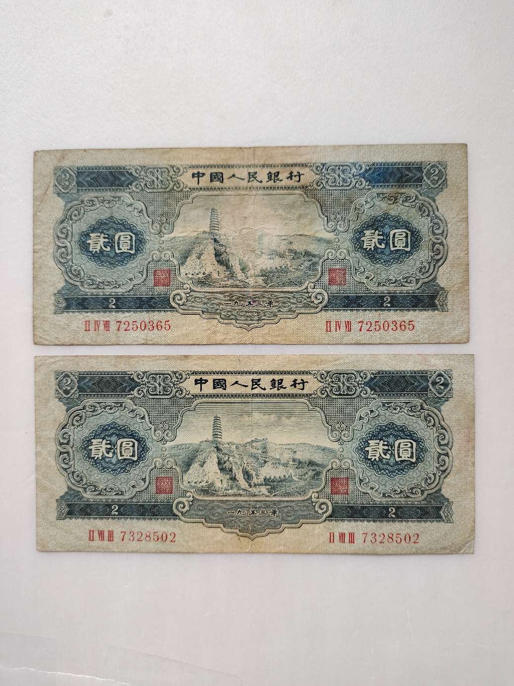 如图:宝塔山原票板子硬无裂口,2张一起1150元包邮。