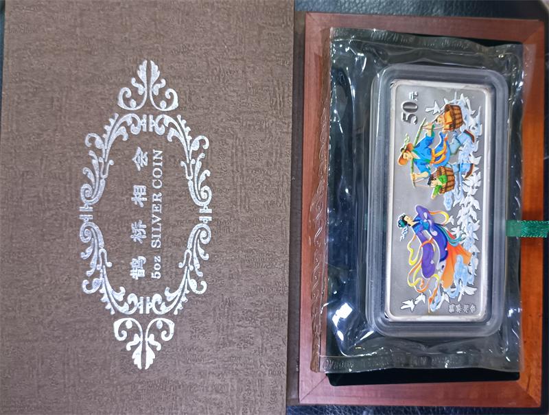 → 售鹊桥相会5盎司银币,原盒原证。
