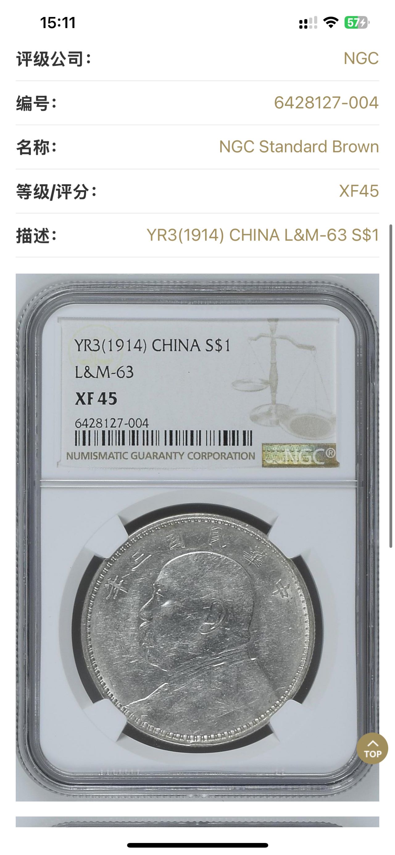 ★1580元出 美国NGC XF45分 好品 三年大头