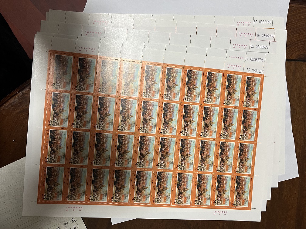 4,97香港回归2版+大块+单方20套(共172套)1.2元,共206元。97天坛2版40元,97侗族1版20元。97石窟1版175元,97三峡3版+22套(共70套)0.8元,共56元