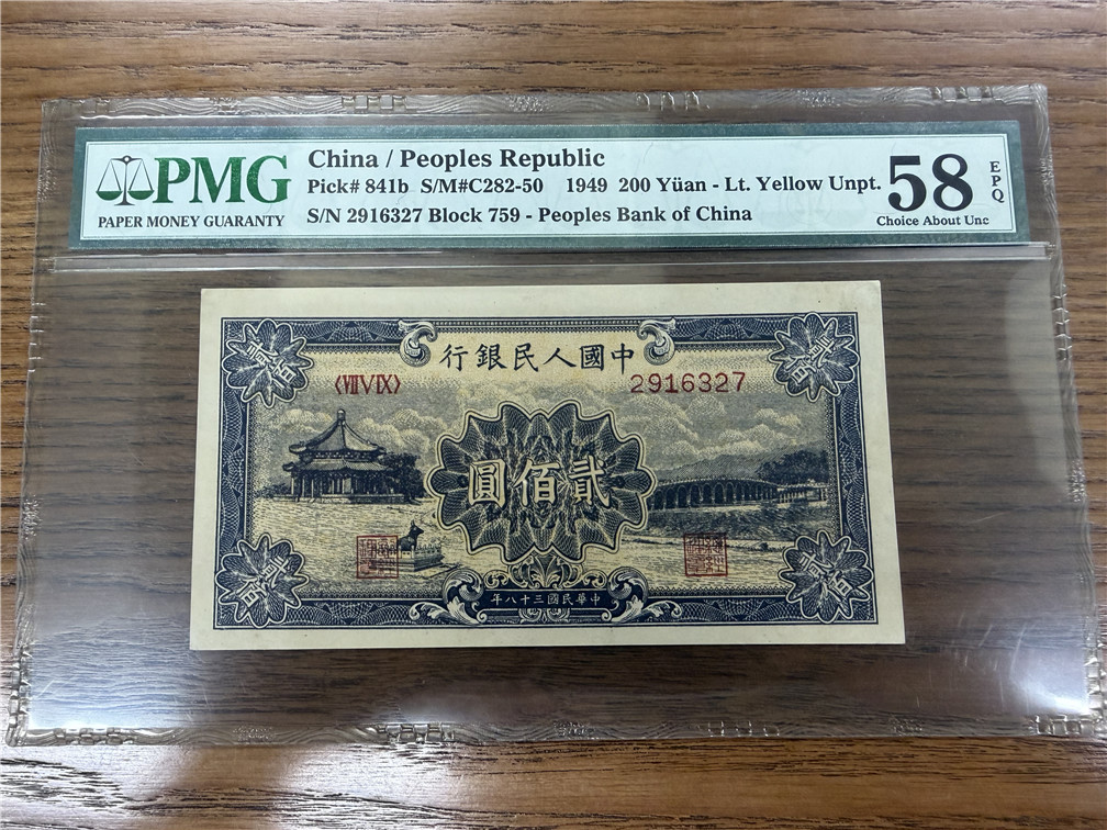 售一版200元颐和园 2916327 PMG58E 45000元