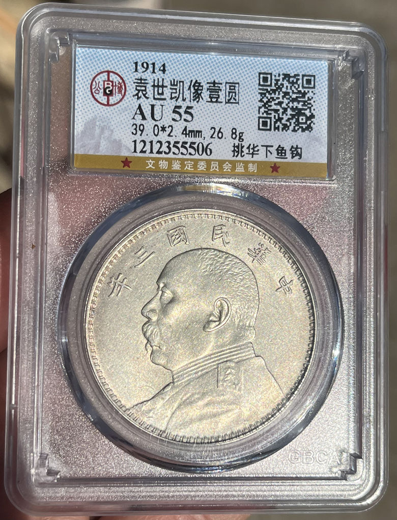 → 公博评级鉴定-AU55 民国三年大头普华下鱼勾芒