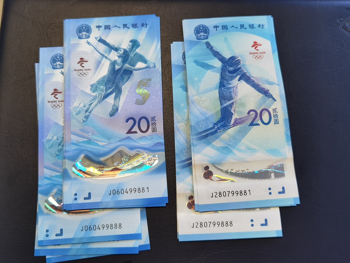 冬奥钞 对钞尾5同号标十带尾888