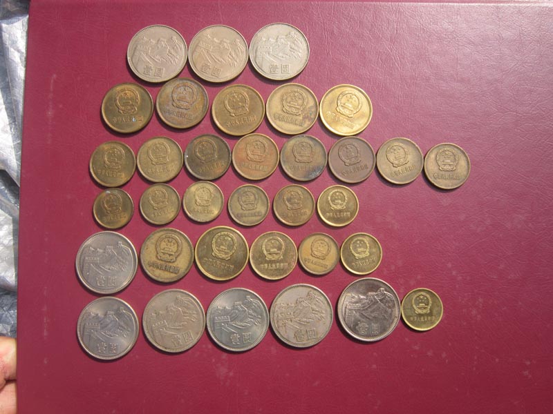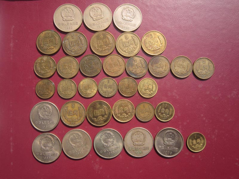 低价处理一批 80 81  85长城币,80年1元3枚,5角5枚,2角8枚,1角6枚,81年1元1枚,5角2枚,2角1枚,1角2枚,85年1元5枚,1角1枚,品如图,售价1980元,款到包发申通!