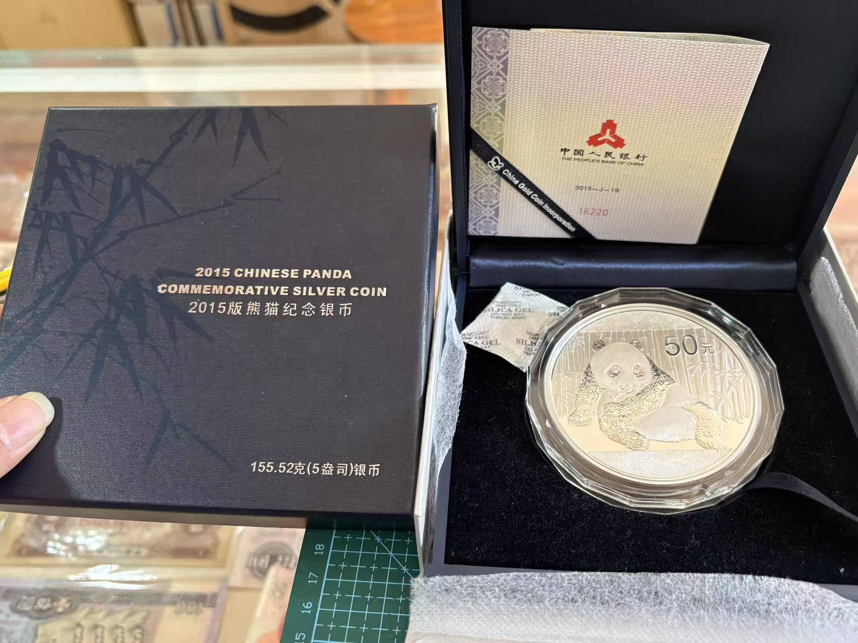 2015年5盎司熊猫,证书无347,,价格3400元,包顺丰