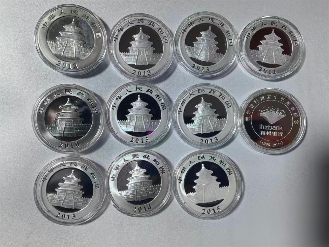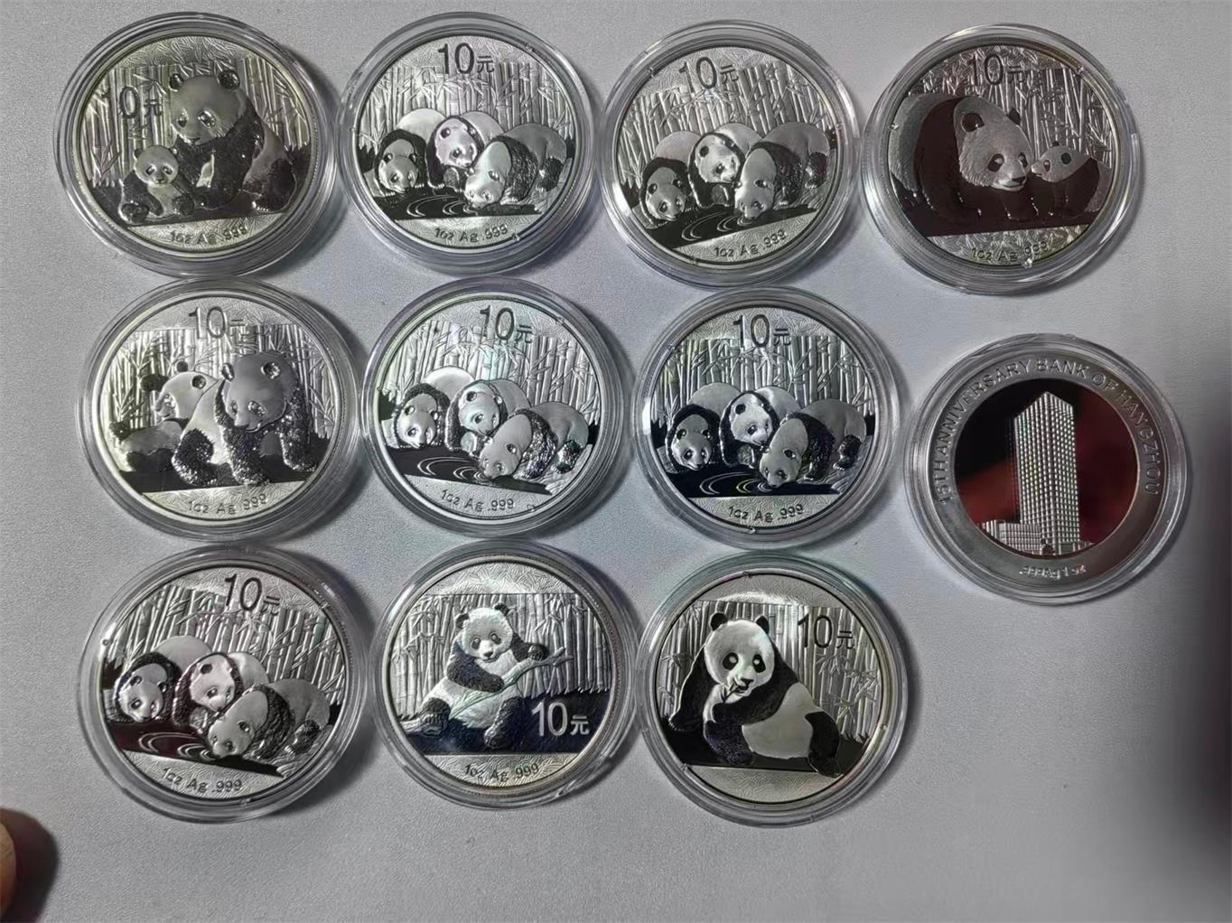 1盎司熊猫10个加一个1盎司杭州银行的银章