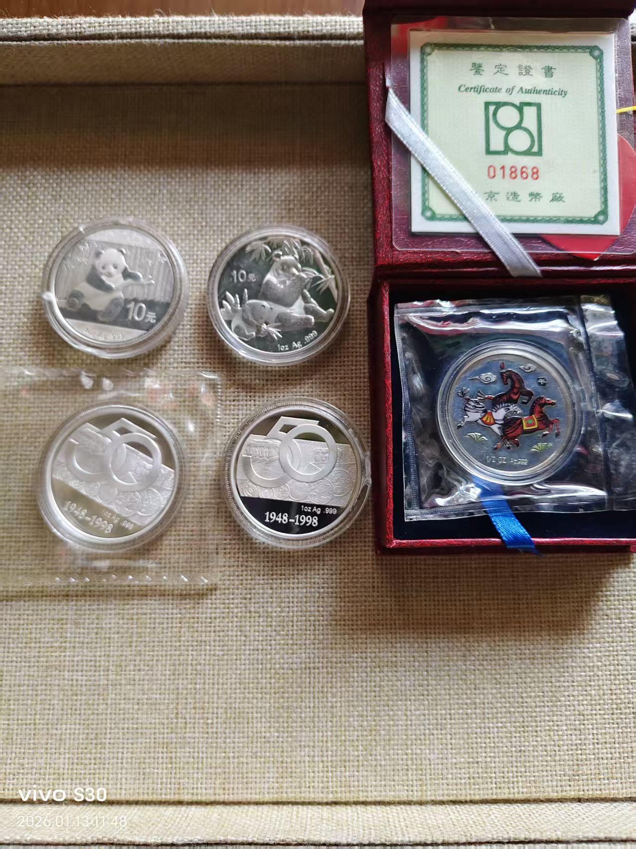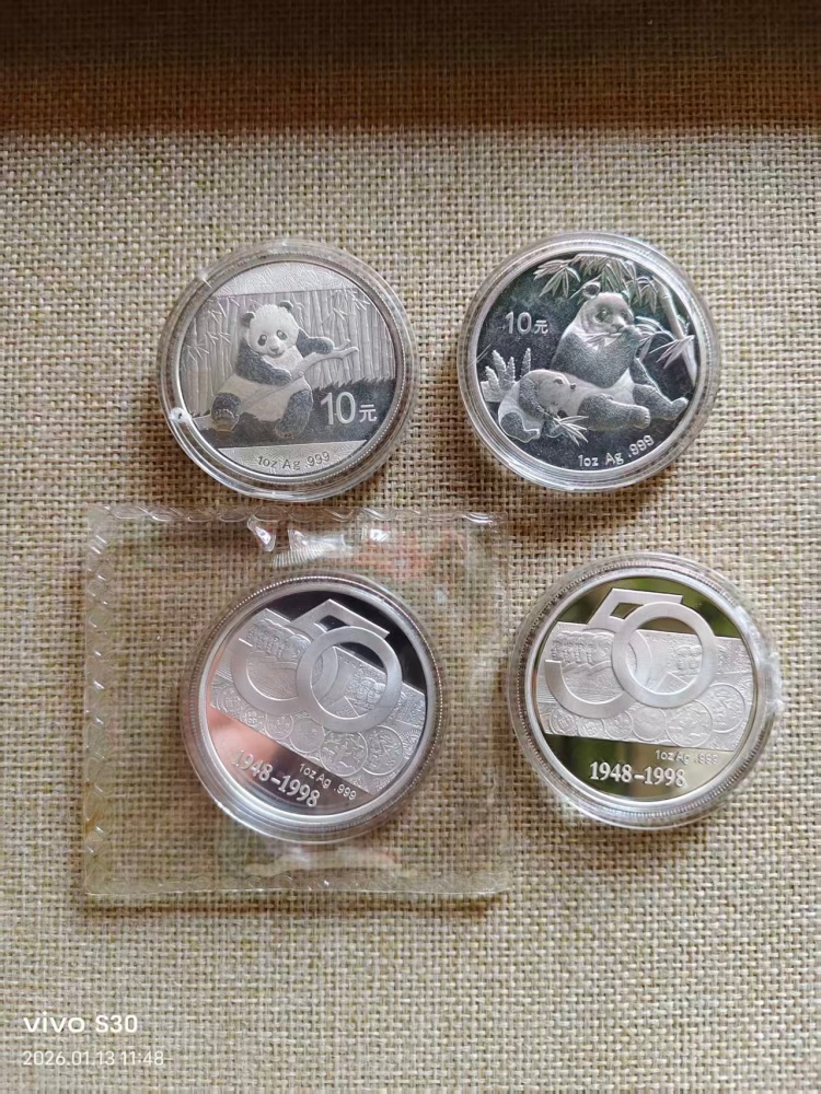 银价出熊猫币二枚,建行银章二枚,2002