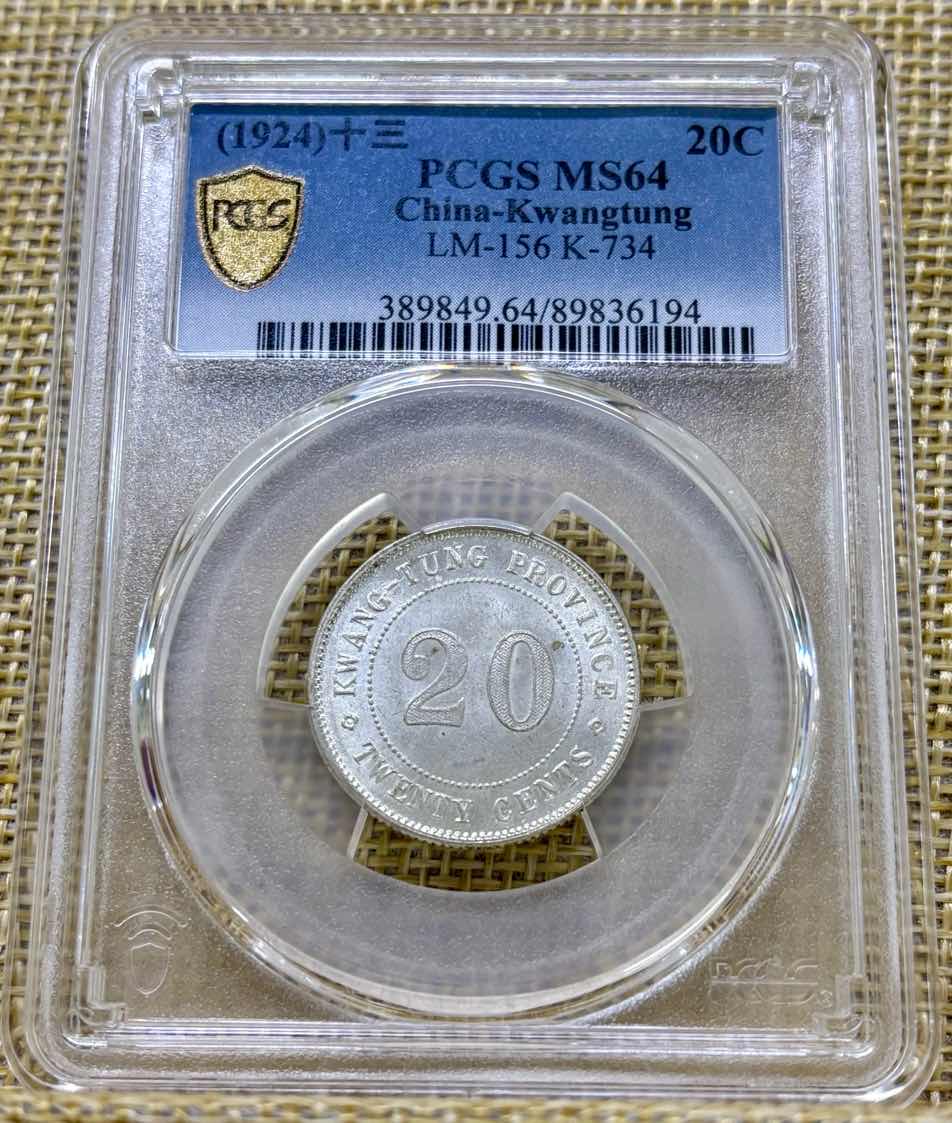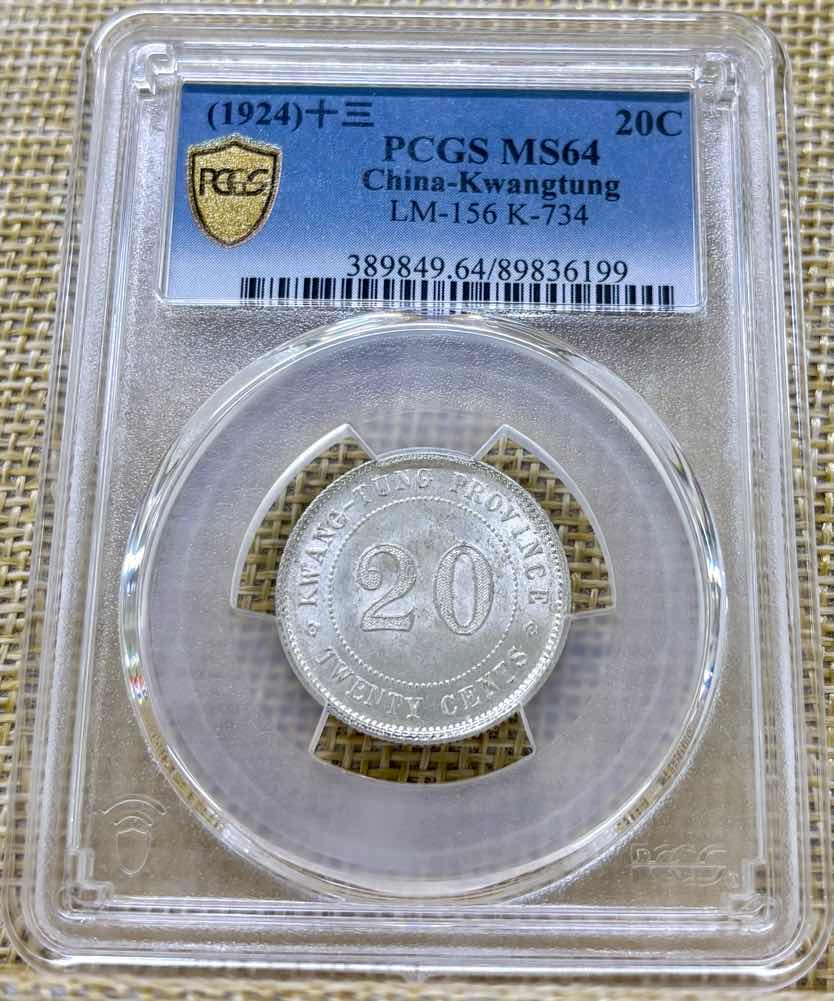 pcgs 64【稀少】广东十三年贰毫银币