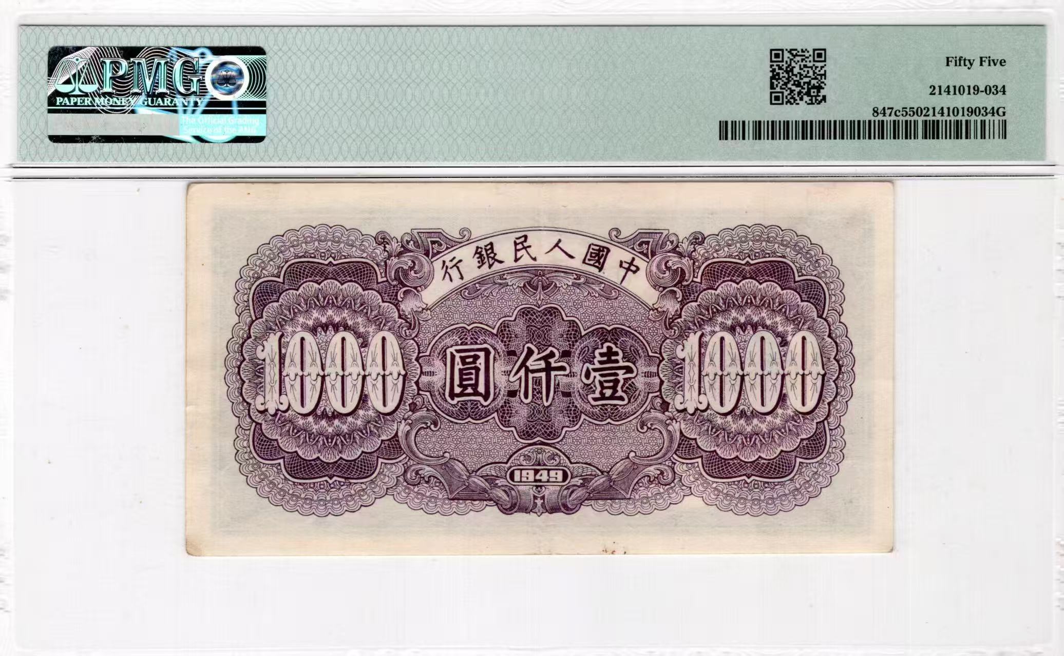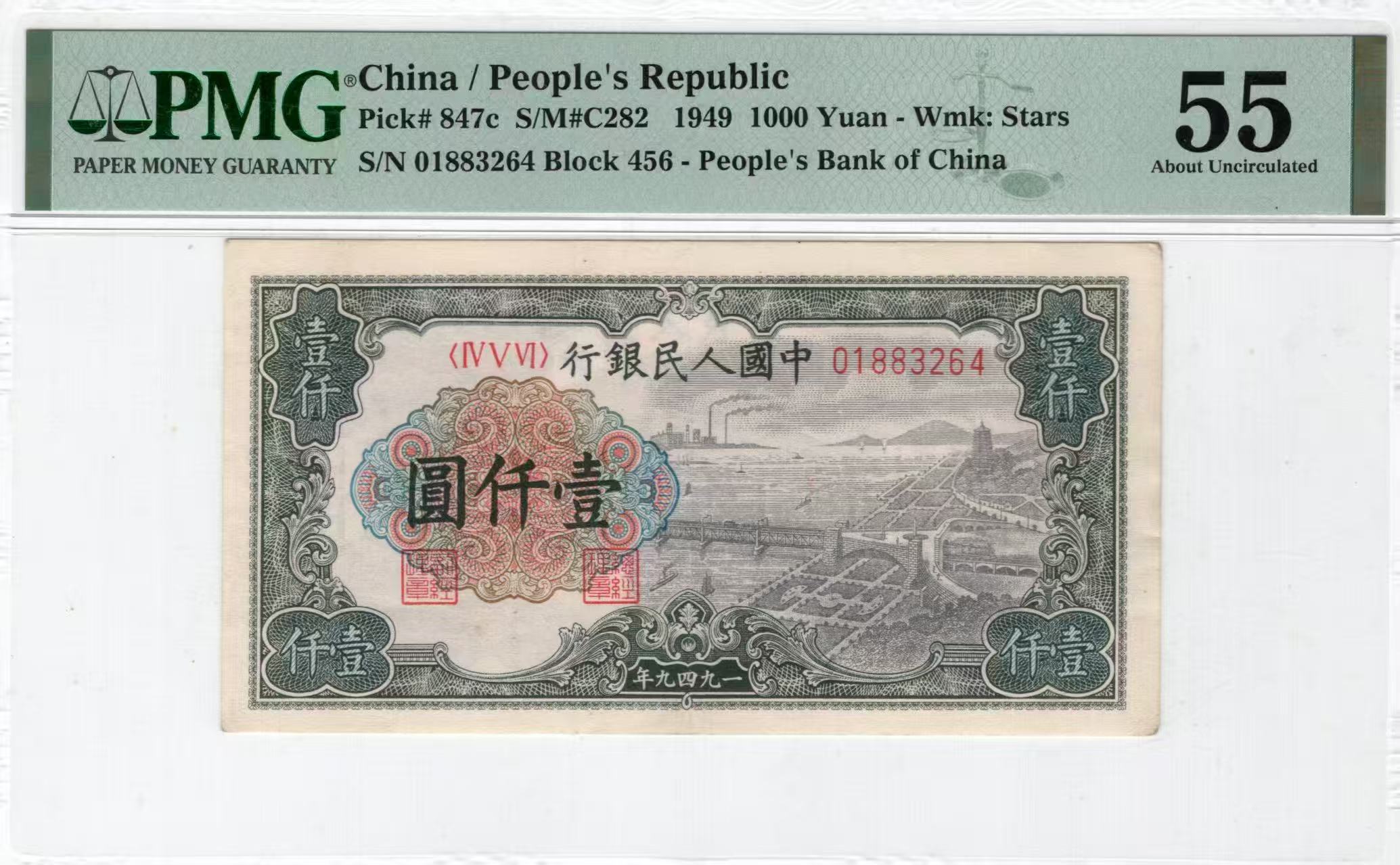 一版钱塘江星水印美评PMG55原票,自然包浆,正常流通边角,售价2500包顺丰